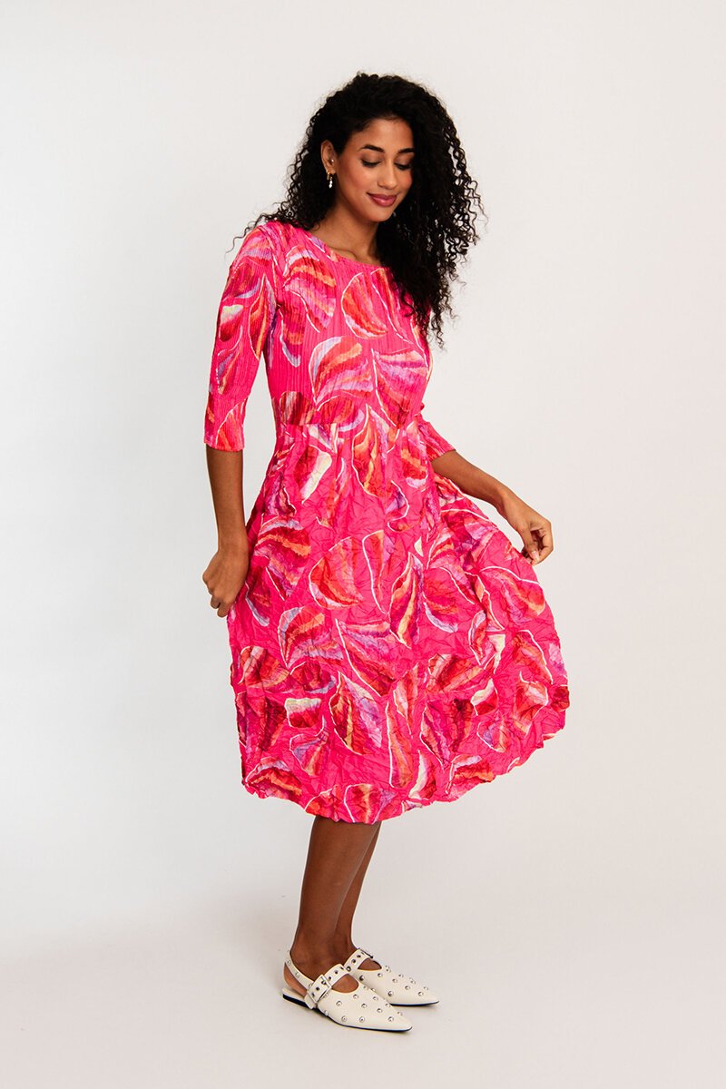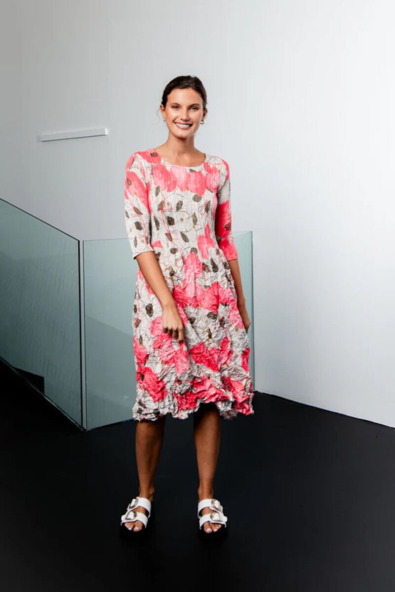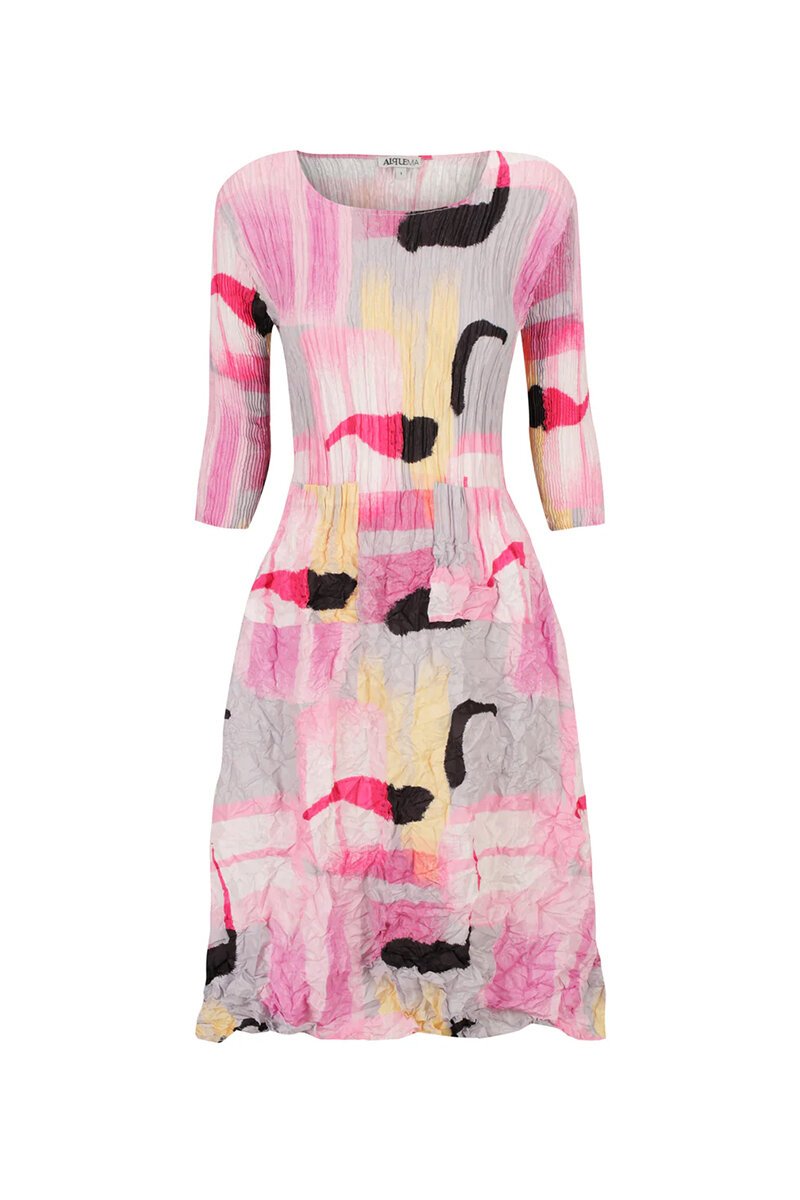 The Alquema 3/4 Sleeve Smash Pocket Dress is all about comfort with a creative twist. Featuring Alquema’s signature crushed texture and vibrant print, it moves beautifully and never clings. With practical pockets and flattering 3/4 sleeves, it’s the kind of throw-on dress that always feels special—effortless, easy, and endlessly wearable.
