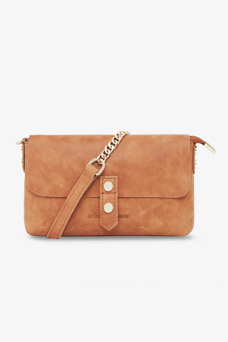 The Arlington Milne Paige Wallet is crafted from premium leather. With soft body, crossbody styling, the wallet has two strap options, a long leather strap that is adjustable/removable and the other with light gold chain detailing. The envelope closure opens to reveal Arlington Milnes signature hot pink lining, interior card slots, coin pouch and key clip.