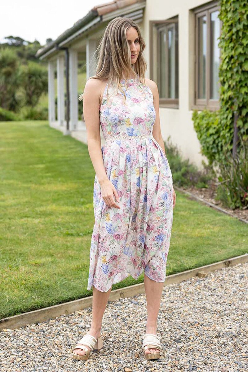 A soft cream floral print maxi dress. Perfect for any upcoming events.