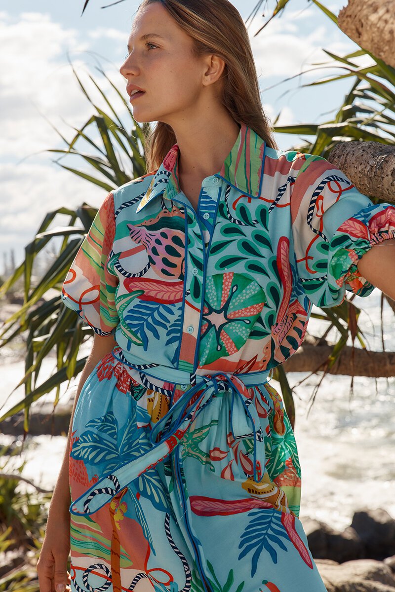 Say hello to Betty Basics Rio Reef Dress—the shirt dress that’s equal parts bold and breezy. With short puff sleeves, a drawcord waist and full button front, it works just as well with sandals for day as it does with wedges at night.
