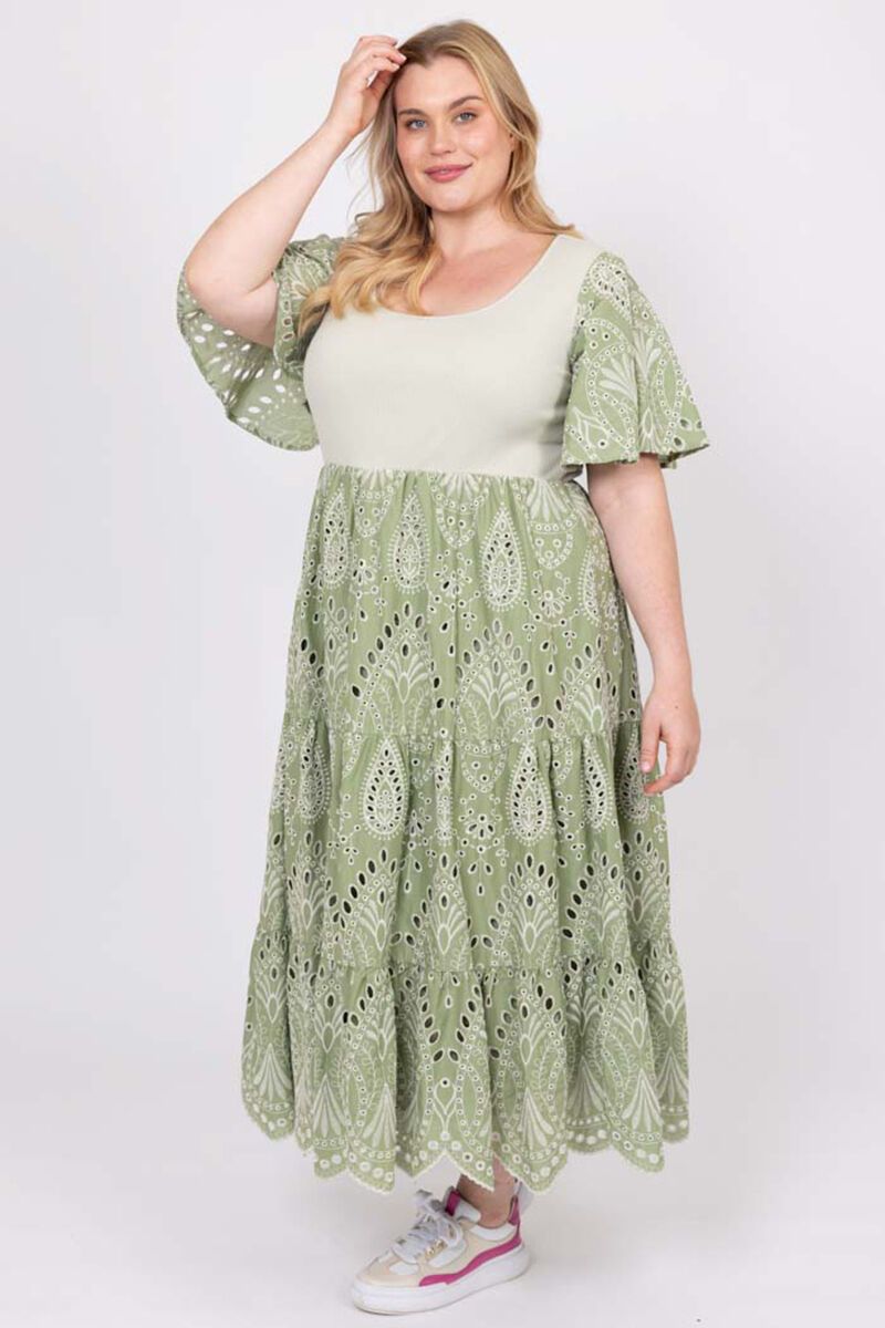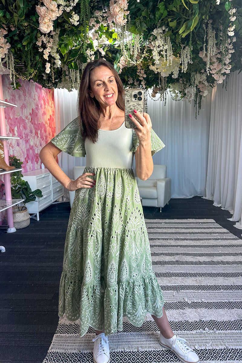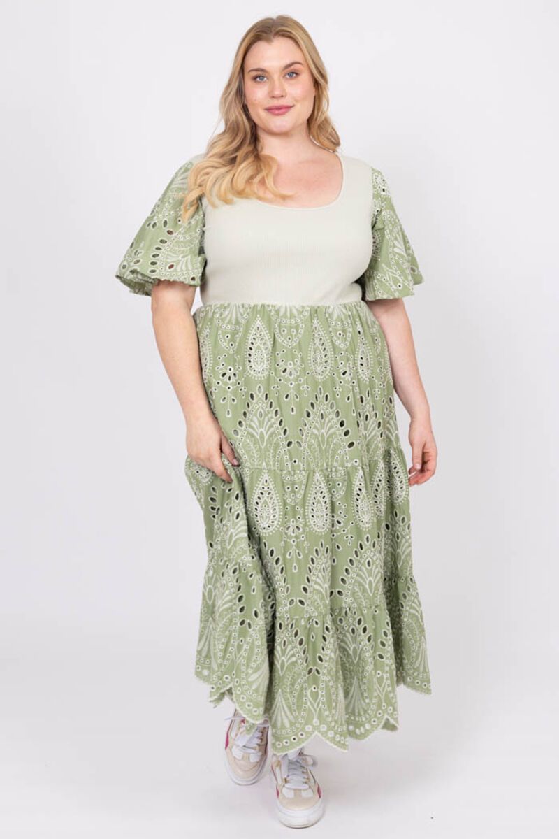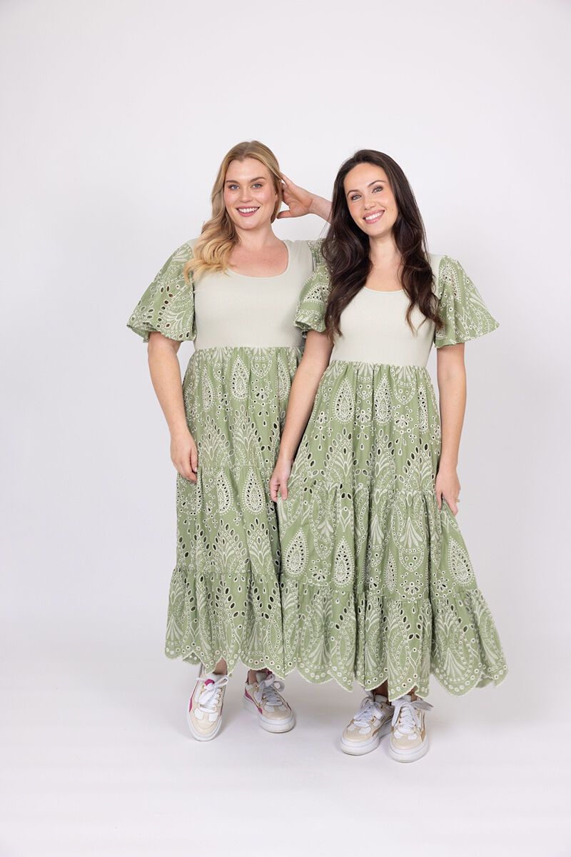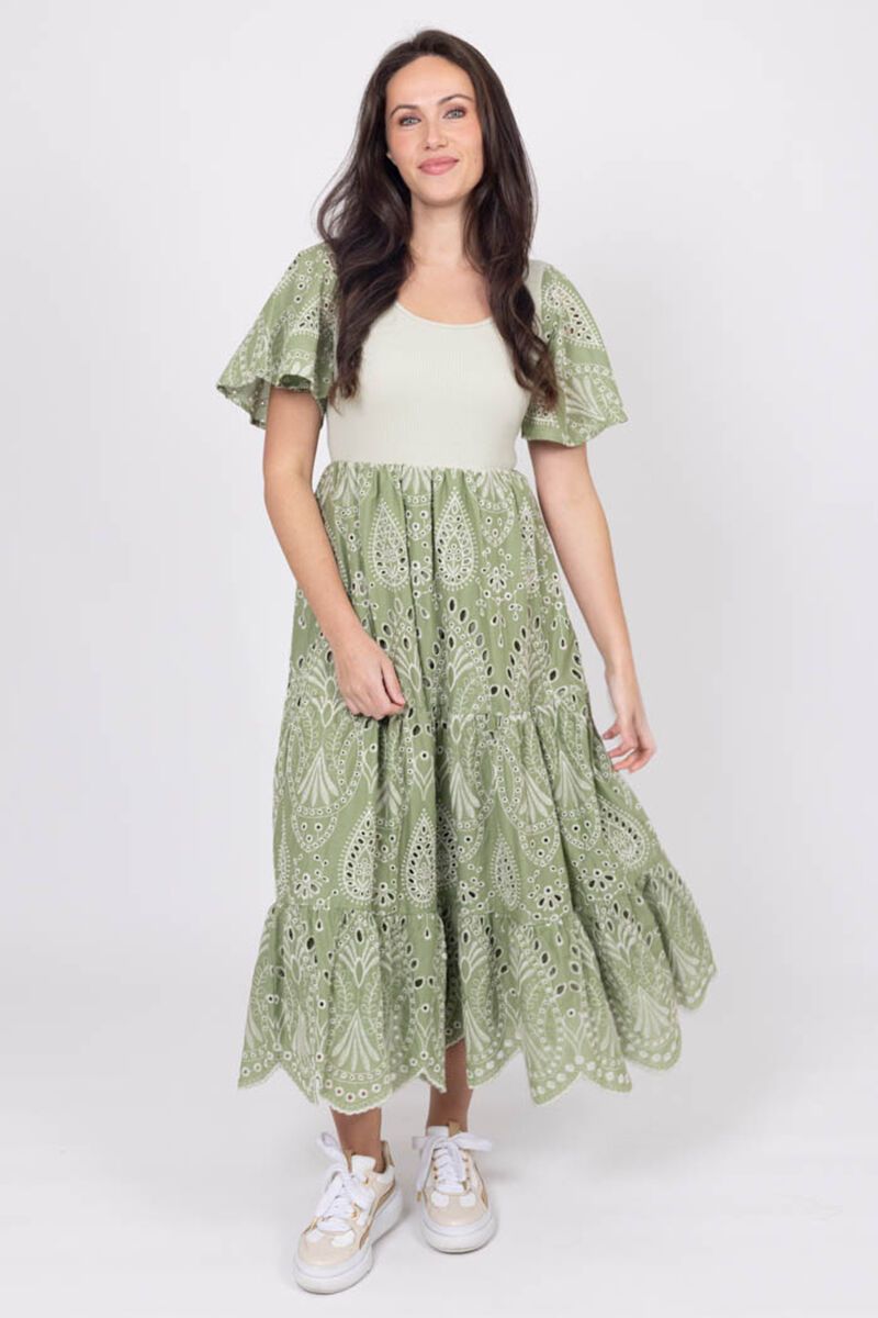 The Charlo Presley Dress is the kind of piece that makes everyday feel a little bit special. With its stretchy ribbed bodice and eyelet-embroidered skirt, it's floaty, flattering, and seriously comfy. Just add sneakers, sandals or boots and you're good to go.