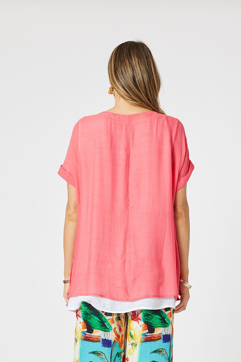 Meet the Clarity Palma Side Button 2 in 1 Top. With its relaxed silhouette and subtle contrast hem, this throw-on-and-go style adds instant polish without even trying. Just add your go-to wide-leg pants or denim and you’re set.