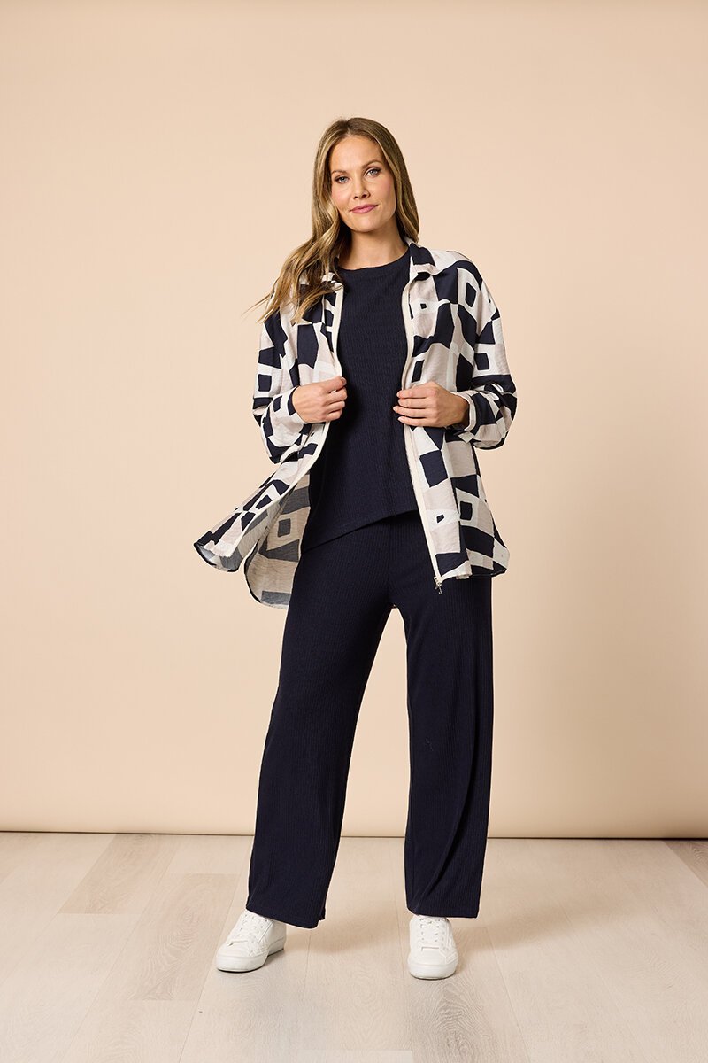 The Clarity Rive Gauche Jacket is an easy throw-on layer that adds instant interest to simple outfits. The relaxed shape and bold abstract print make it perfect worn open over a tee or zipped up with matching pants.