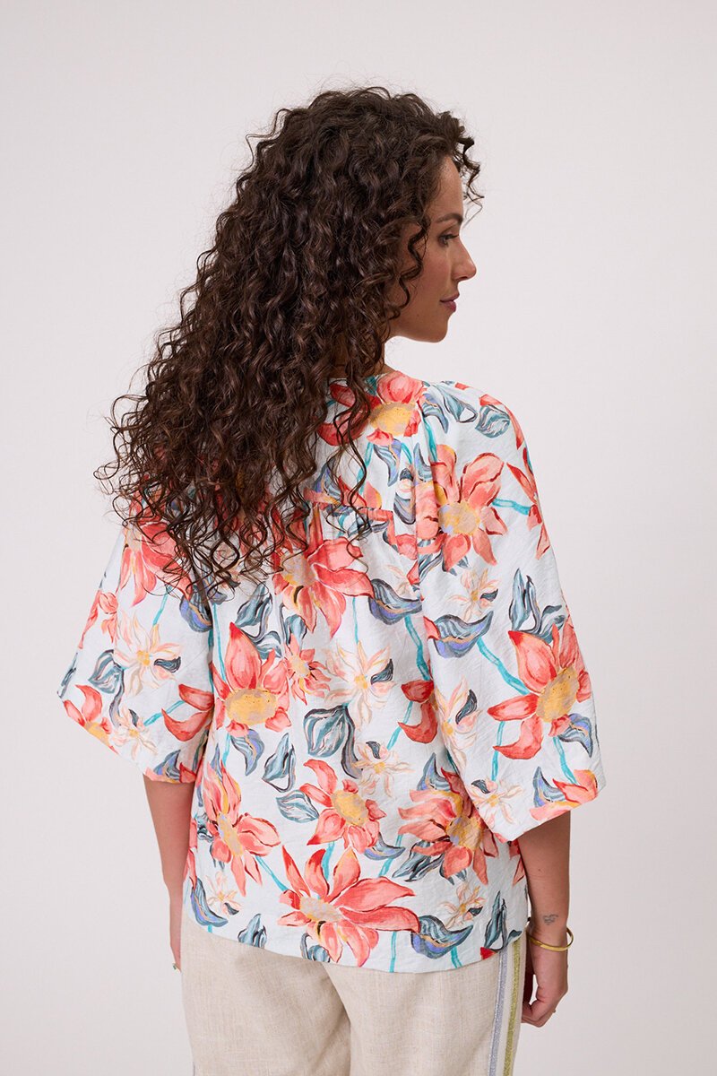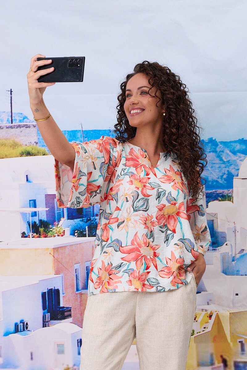 The Classified Verona Flower Top is a bright, easy favourite for sunny days. Cut in a relaxed fit with a notch neckline and elbow-length sleeves, it’s made from a lightweight, breathable fabric that drapes beautifully — perfect for pairing with linen pants or denim.