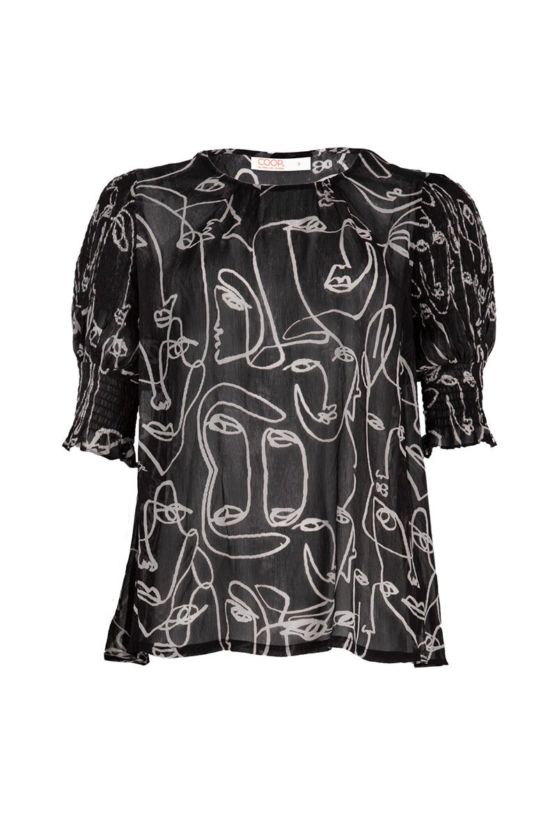 The Coop Crinkle Crush Top brings texture and attitude to your look. Featuring a lightweight crinkled fabric and abstract line print, this relaxed-fit top is finished with softly ruched sleeves. Easy to style with denim or linen for a cool, contemporary vibe.
