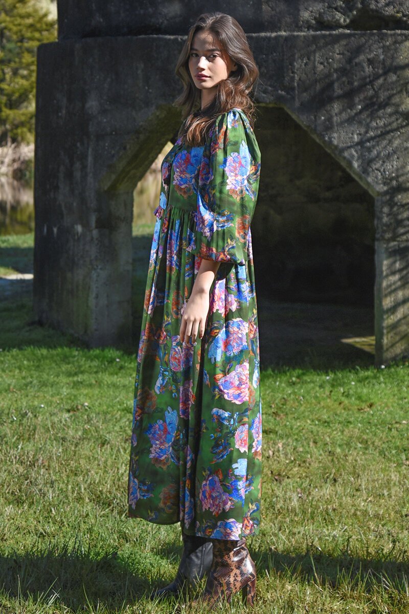 The Floral Flair Dress adds effortless impact with it's painterly Brush Strokes print and softly gathered waist. Button-through styling and delicate frill details bring a feminine finish, making it perfect for elevating everyday wear with a little extra personality.