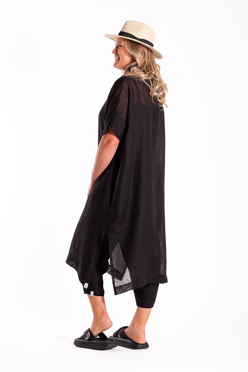 The Deeanne Hobbs Linen Primitive Dress is an effortless, throw-on-and-go piece made from breathable linen. With its relaxed silhouette, short sleeves, and easy drape, it’s the kind of dress you’ll live in all season. Perfect layered over pants or worn solo on warm days.