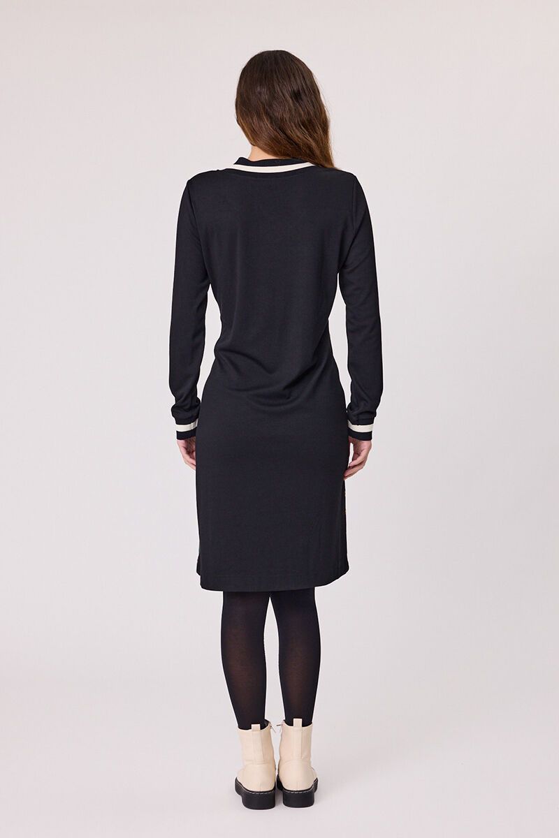 Feminine with a modern edge. The Democracy Margot Knit Dress features a statement floral front panel with contrast V neckline and cuff trim, balanced by a sleek plain back. Soft, stretchy and easy to wear, it’s polished enough for work and relaxed enough for weekends.