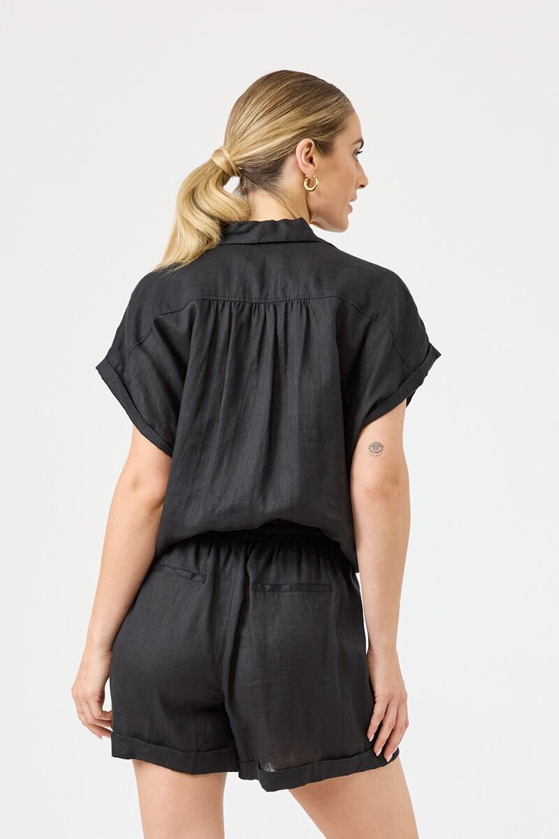 The Eb & Ive Studio Tie Shirt brings a fresh twist to a classic button-up. With its relaxed fit, short sleeves, and tie-front detail, it strikes that sweet spot between laidback and put-together—easy to wear and always flattering.