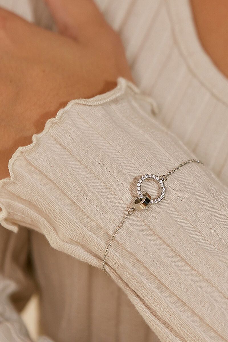 Eternal Orbit Bracelet Steel is that easy piece that pulls everything together. Linked rings—one clean, one with a hint of sparkle—give it just enough detail while still feeling effortless. Perfect on it's own or stacked.