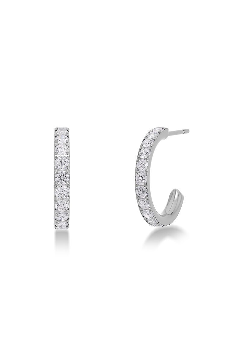 Glow Earrings Steel are that easy classic with a touch of sparkle. Stones line the front for a refined finish, while the half-hoop shape keeps them light, polished, and perfect for everyday wear.