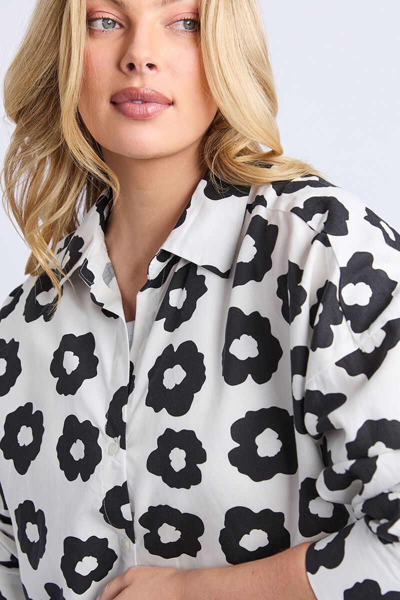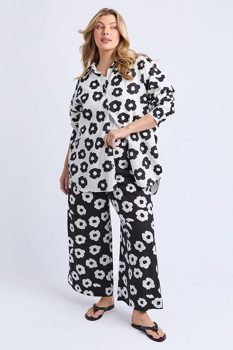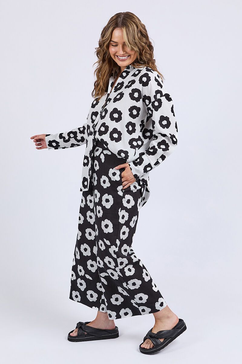 The Elm Azalea Shirt is a statement piece that makes getting dressed fun and easy. With its relaxed fit, button-through front, and bold floral print, it’s perfect for styling loose over jeans or half-tucked with matching pants for a head-turning look.