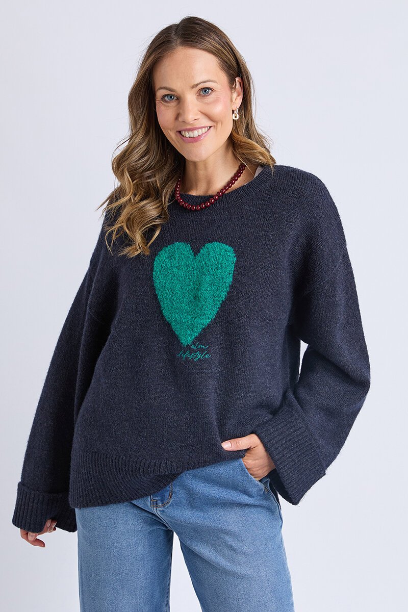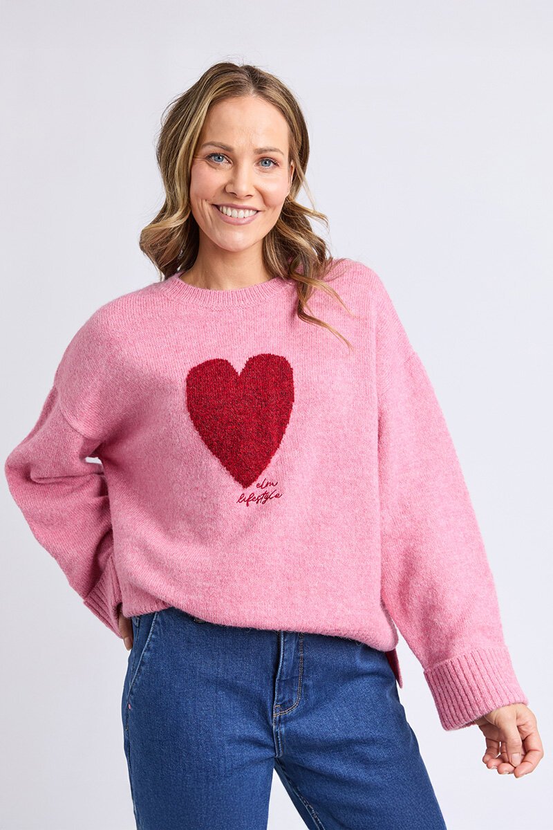 Cosy knit with a relaxed shape, featuring a playful heart motif and ribbed crew neckline. Soft, warm and easy to wear, it adds a feel-good touch to everyday winter outfits..