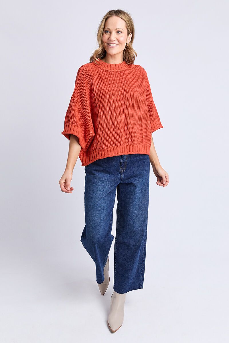 The Elm Luella Short Sleeve Knit is an easy throw-on layer with a relaxed fit and textured knit feel. Finished with ribbed trims and soft volume sleeves for an effortless everyday look.