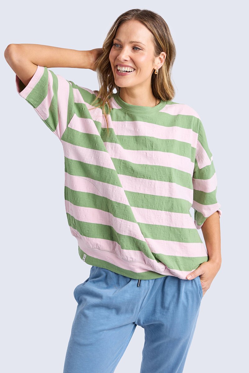 The Elm Mazie Block Stripe Sweat is your laid-back summer layer, bringing a pop of personality with its bold stripes and relaxed fit. Soft, lightweight, and easy to throw on, it pairs perfectly with denim, joggers, or shorts for effortless everyday style.