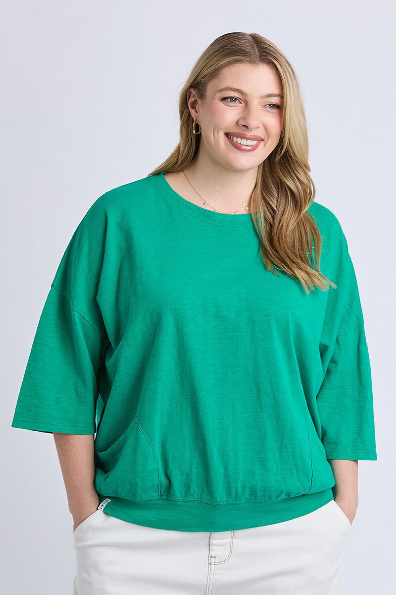 An easy everyday top with a relaxed shape and soft drape. Featuring a classic round neckline and elasticated hem, it’s a comfortable throw-on style that works effortlessly with denim or casual pants.