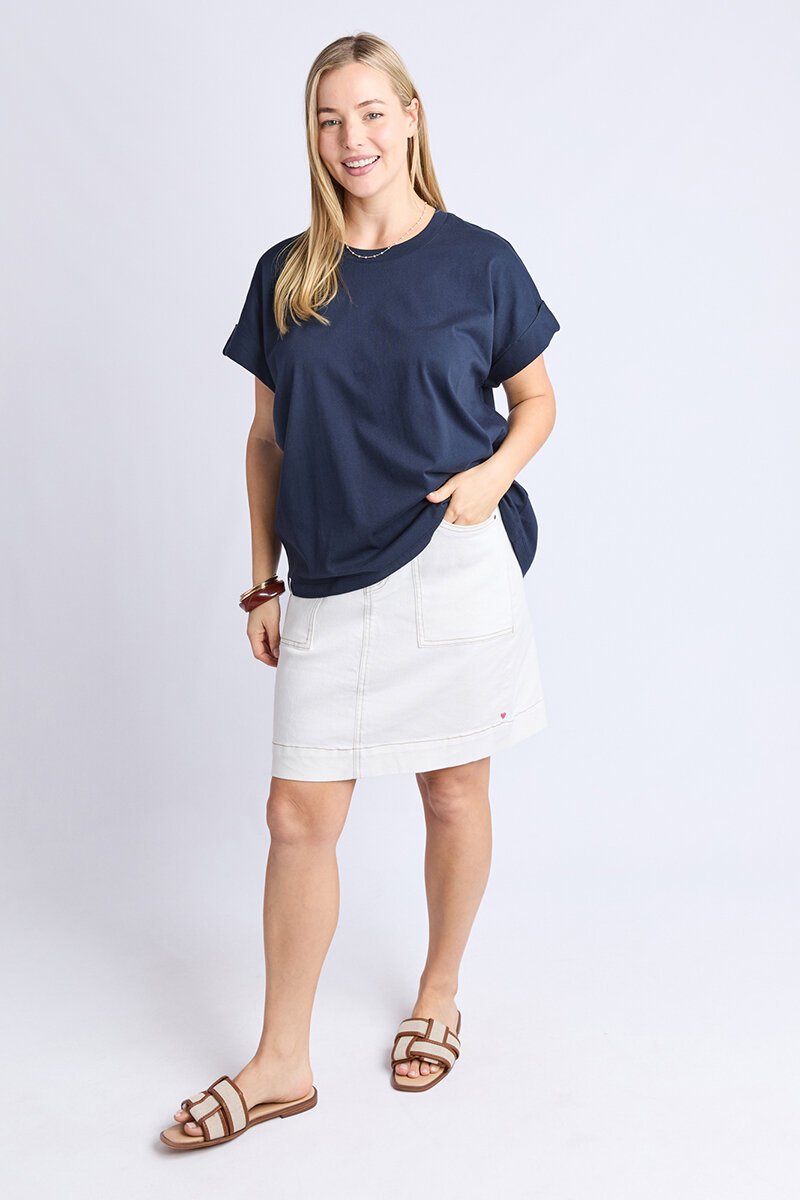 The Elm McKinley Tee is your go-to for casual comfort with a fresh, modern fit. Featuring cuffed sleeves, a relaxed silhouette, and a soft cotton feel, it’s the perfect everyday staple. Perfect with denim or lounge shorts.