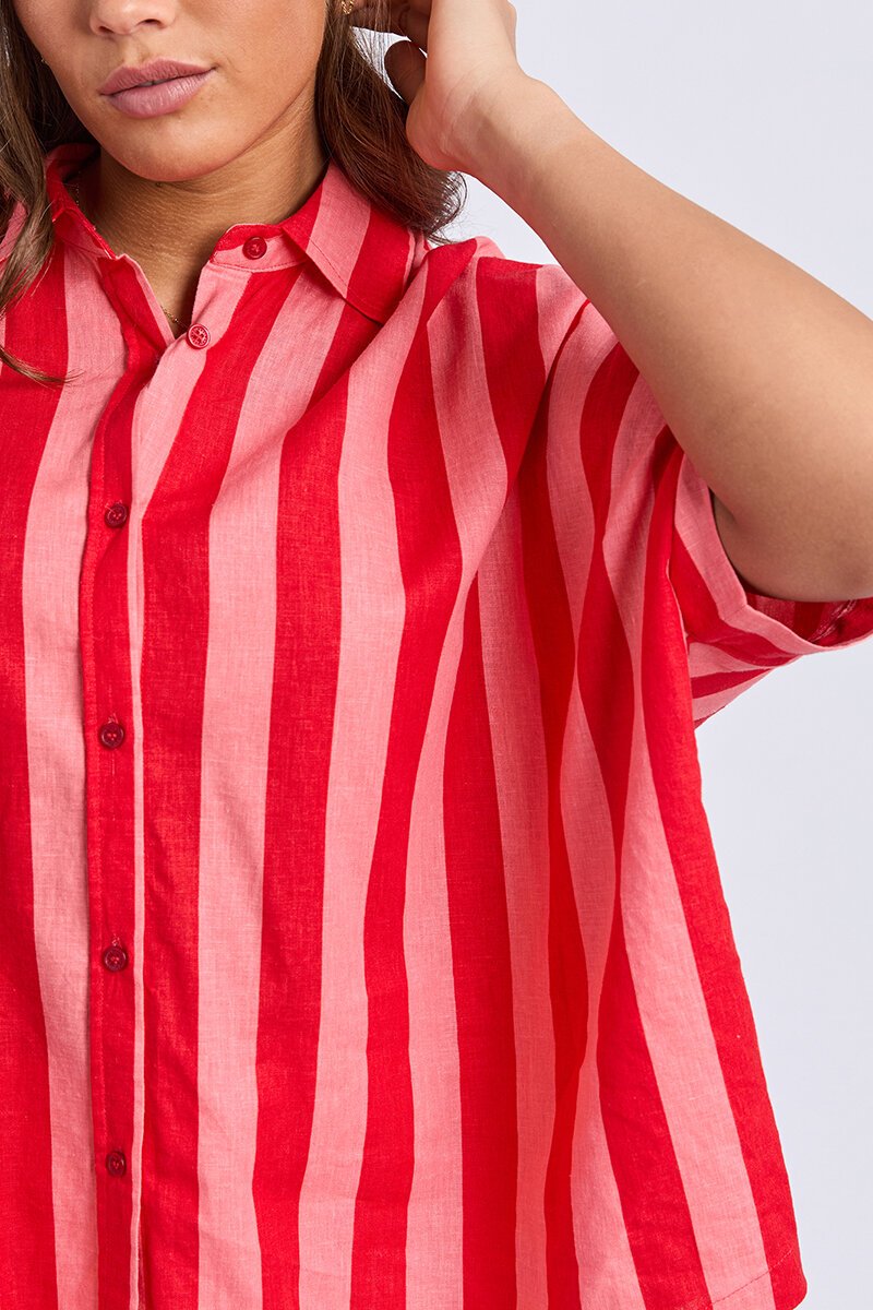A bold favourite for warm days. The Elm Palermo Stripe Shirt brings an easy, oversized fit with a crisp collar, button front and relaxed drape. Wear it loose with denim or half-tucked into a skirt for effortless everyday style.