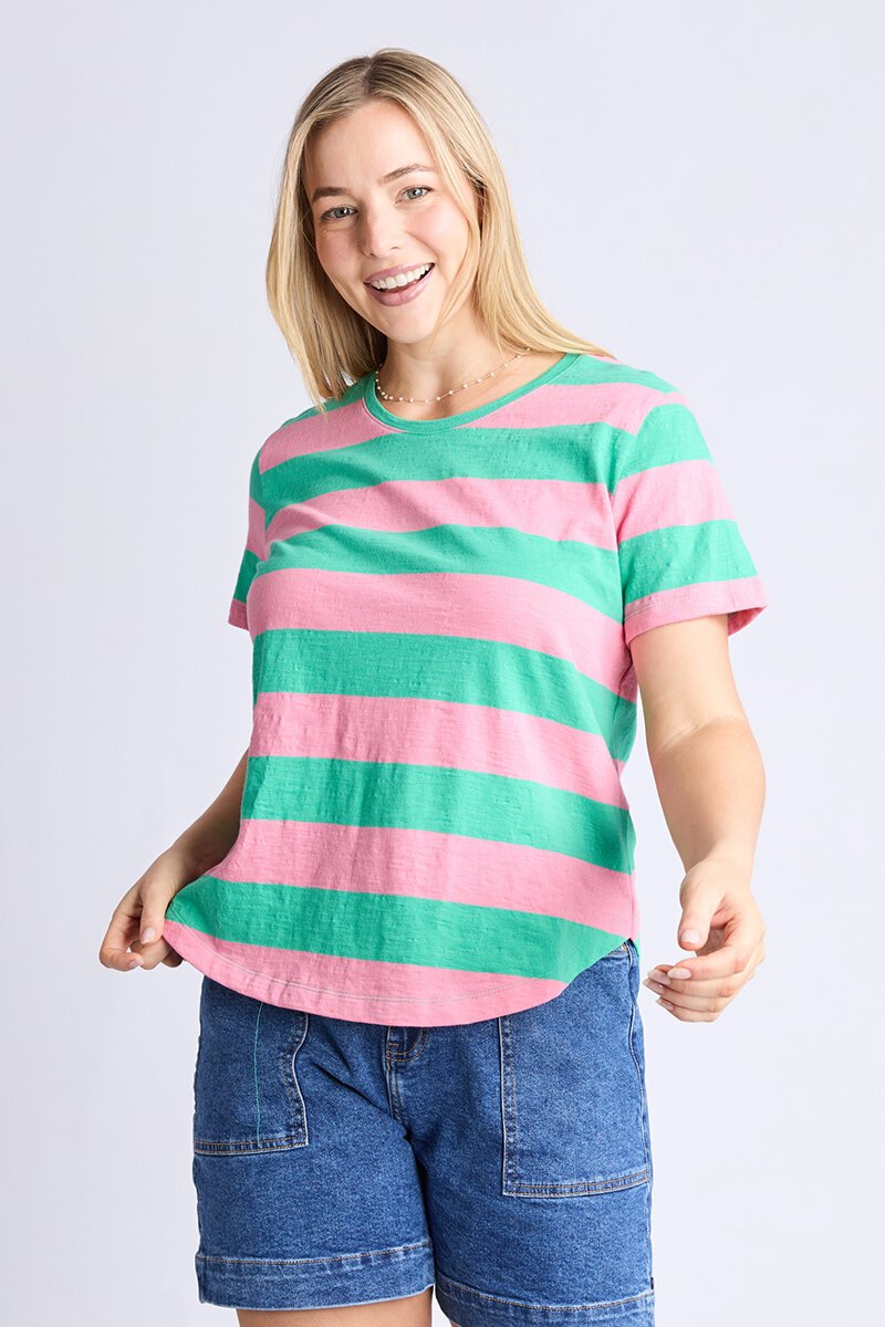 The Elm Spritz Stripe SS Tee brings a pop of playful colour to your everyday lineup. Made from soft cotton with a relaxed fit and curved hem, it’s the perfect throw-on for off-duty days. Style it with denim or shorts for instant feel-good vibes.