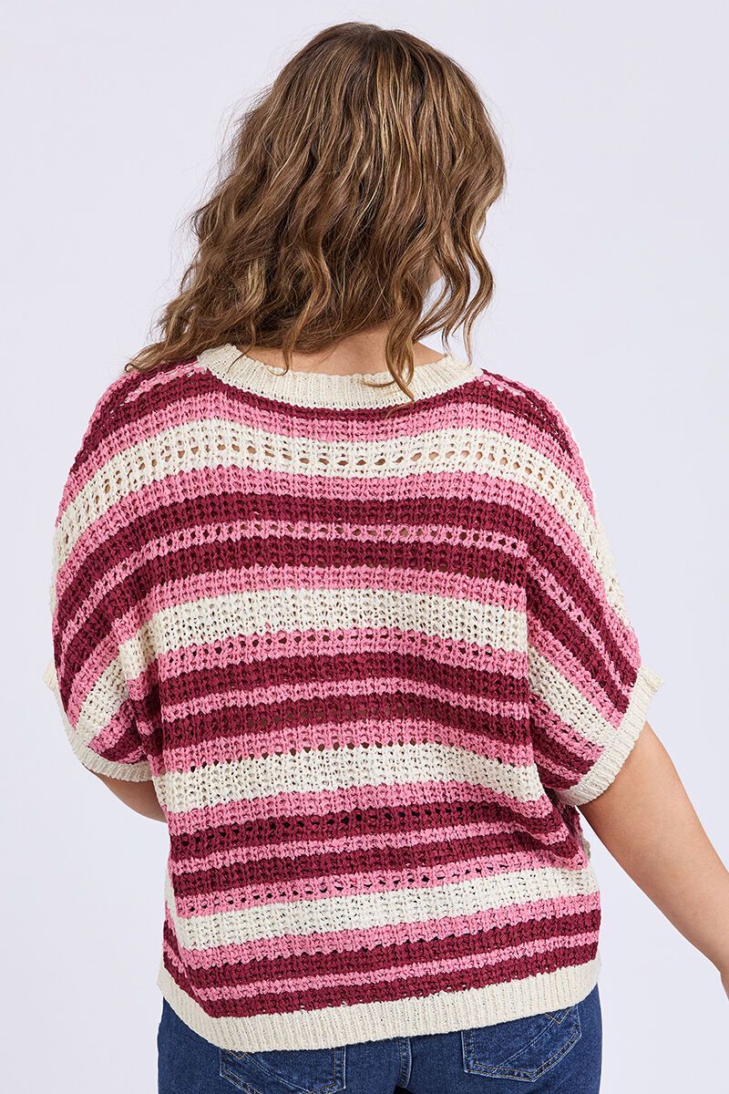 The Elm Striped Knit Top is an easy throw-on with a relaxed fit and lightweight open knit feel. Perfect for layering or wearing solo with denim for effortless everyday style.
