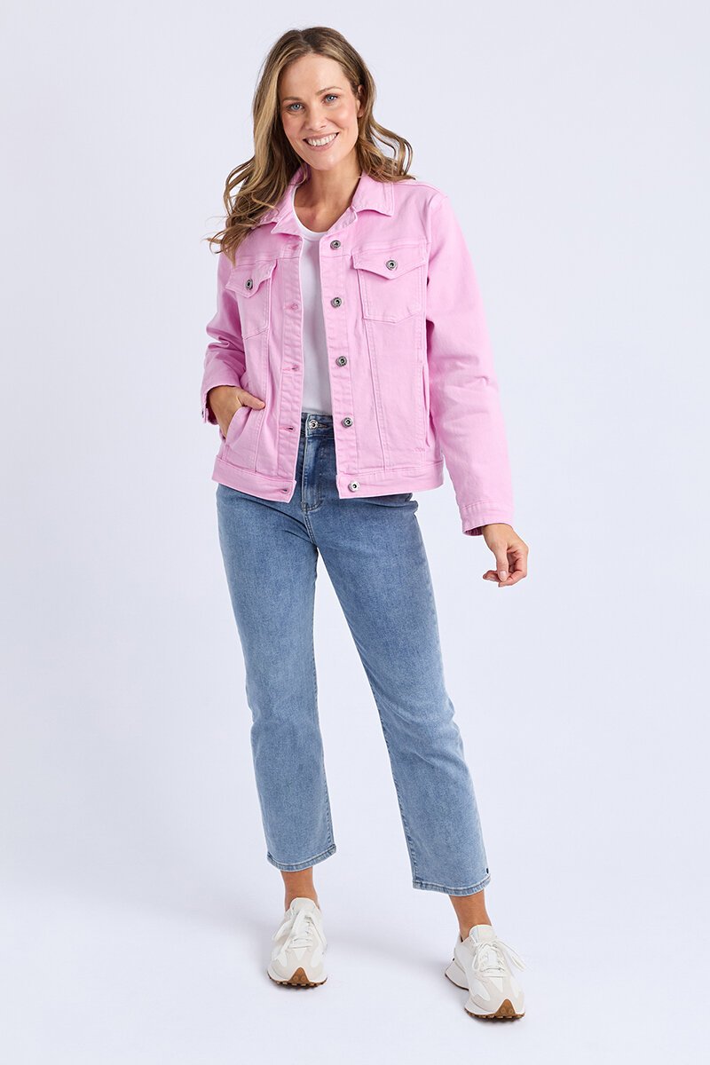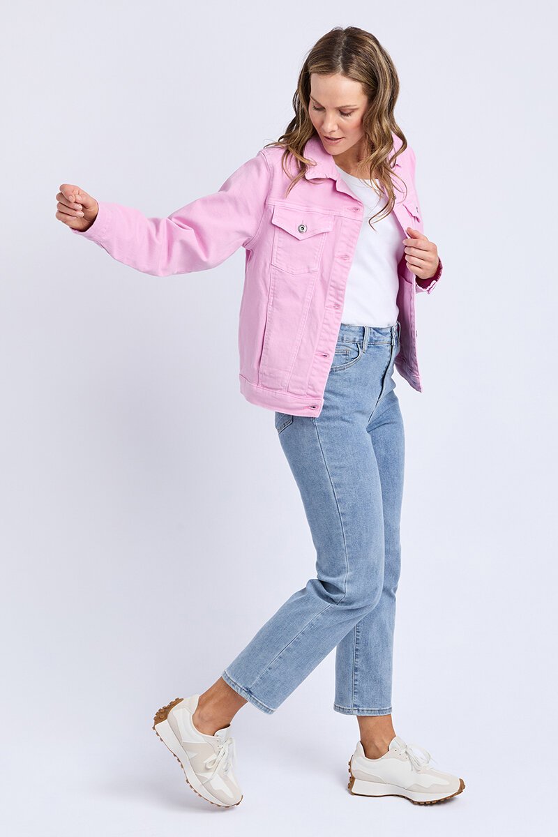 The Elm Tilly Denim Jacket adds a bright, playful layer to any outfit. Classic denim styling meets a fun pop of colour—perfect over dresses, tees, or tanks for easy everyday wear.