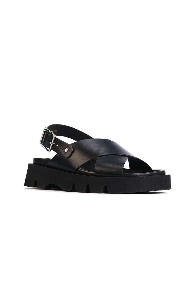 The EOS Monnis Sandal brings bold style with everyday comfort. Featuring wide leather cross-over straps, a chunky platform sole, and an adjustable buckle, this modern sandal adds edge to any outfit while keeping it wearable from day to night.
