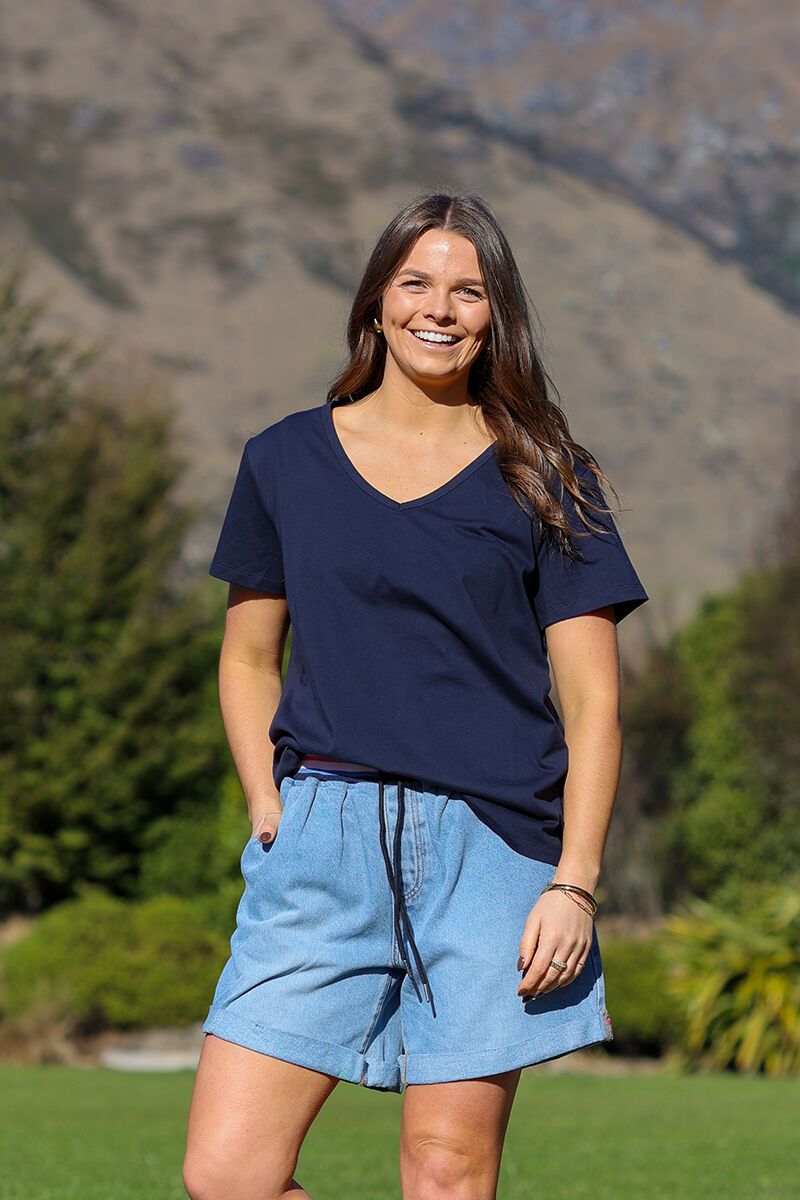 The Esplanade Everyday V Neck Tee is a true wardrobe staple. Made for easy, everyday wear, its simple V neckline and relaxed fit make it perfect for pairing with everything from denim shorts to skirts. A go-to tee you’ll reach for on repeat.