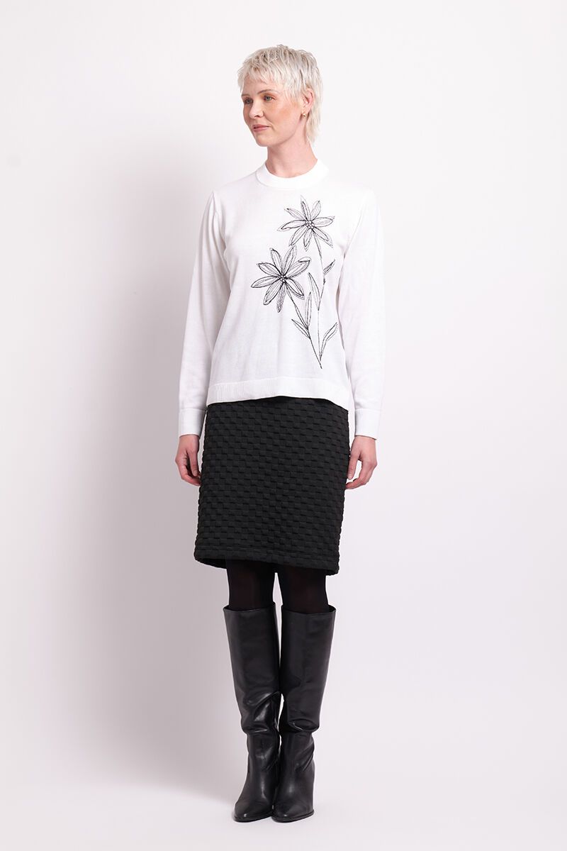 Esplanade Jacquard Knit Check Skirt – a sleek, textured staple that works for any occasion. The fitted silhouette and stretch jacquard fabric offer both comfort and style. Pair it with a soft knit for a relaxed vibe or a blazer for a polished finish.