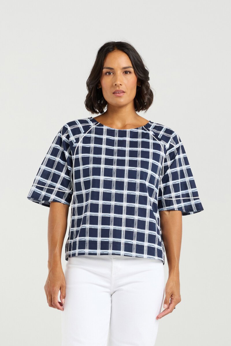 The Et Alia Mila Top is relaxed, modern, and effortlessly cool. Featuring a bold check design and wide short sleeves, it’s the kind of top that works just as well for laid-back weekends as it does styled smart for work.