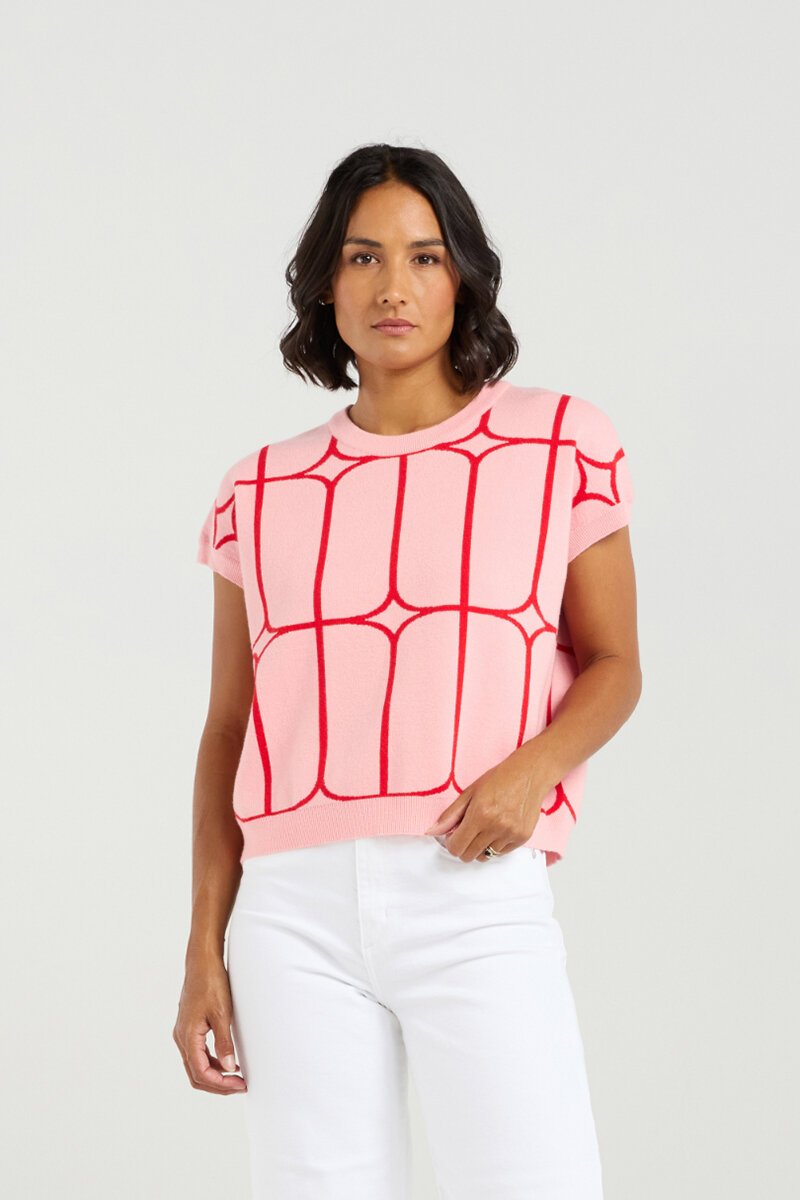 The Et Alia Sedgewick Knit is the ultimate pop of fun for your wardrobe. With its bold trellis design and relaxed fit, this short-sleeve knit adds a playful twist to everyday dressing—perfect with white denim or layered over a skirt.