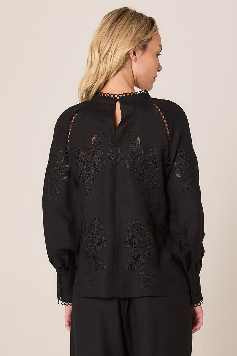 The Fate + Becker Aven Embroidered Blouse brings soft elegance to everyday dressing. Delicate embroidery, sheer detailing and a relaxed fit make it an easy standout with denim or tailored pants.