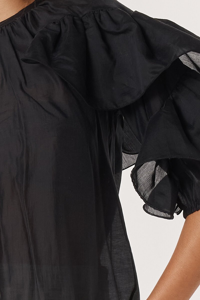 A dramatic take on the classic blouse, the Fate + Becker Celeste Ruffled Blouse brings volume and texture with bold, ruffled sleeves and sheer fabric. It’s got that “throw on and feel fabulous” energy, perfect for evenings out or styled with denim for a high-low moment.