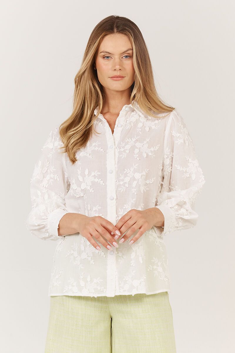 The Fate + Becker Gardenia Shirt is your pretty-yet-polished staple for spring. With all-over embroidery and soft, gathered sleeves, it adds a touch of texture without being too much. Perfect with denim or tailoring, depending on your day.