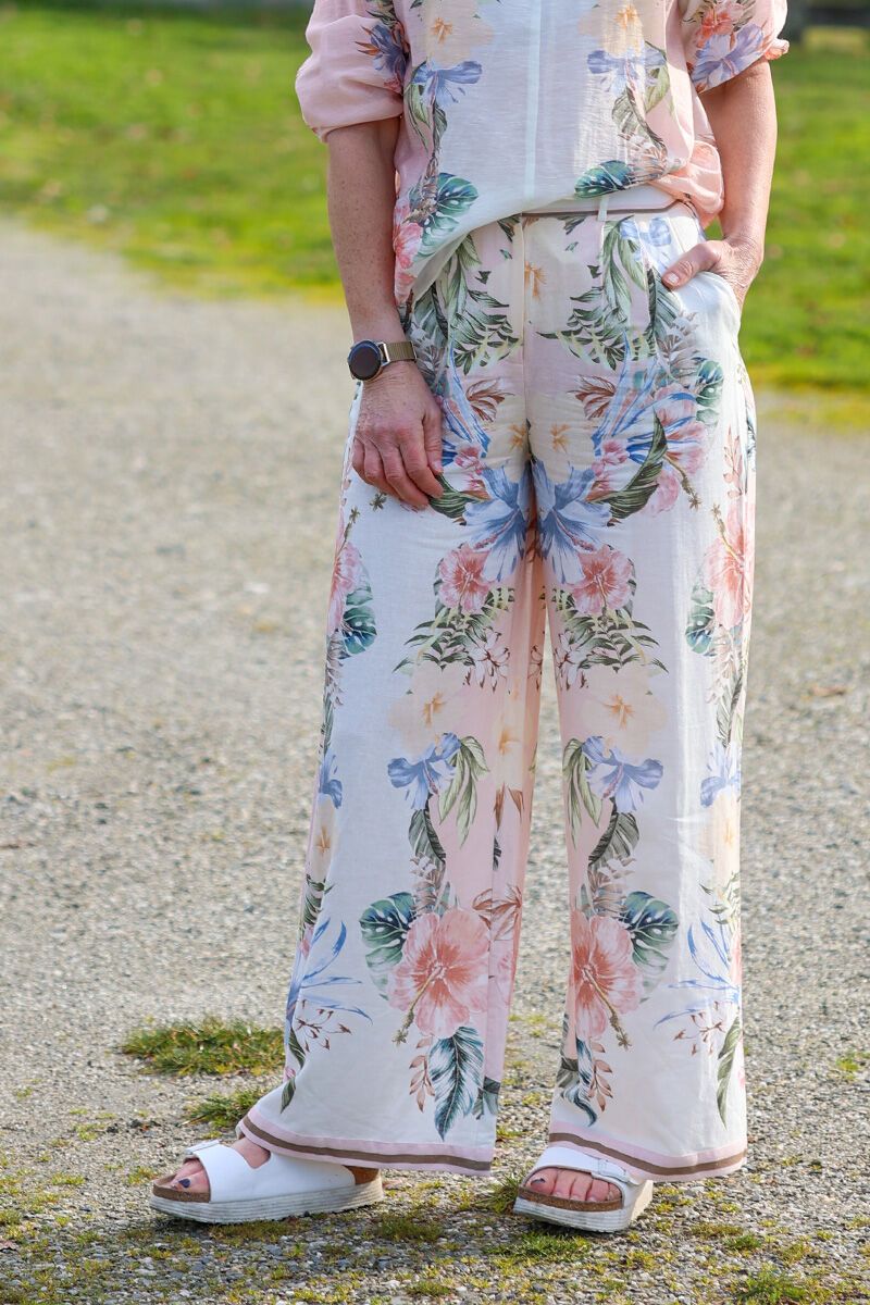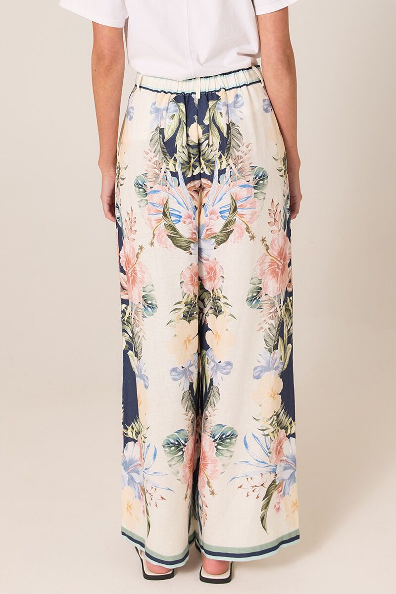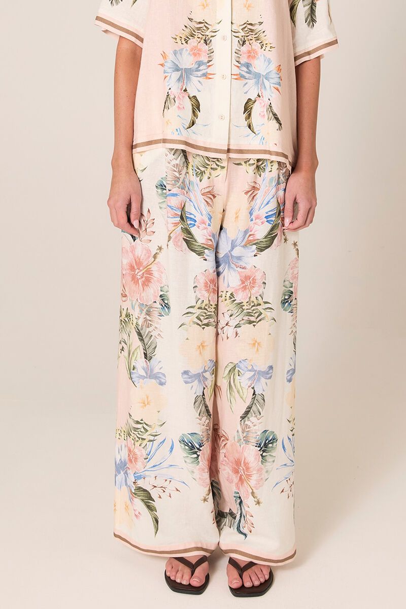 The Fate + Becker Solara Placement Print Pant features a flowing wide leg and statement placement print. Easy, flattering and lightweight, perfect styled with a simple tee or matching Solara top.