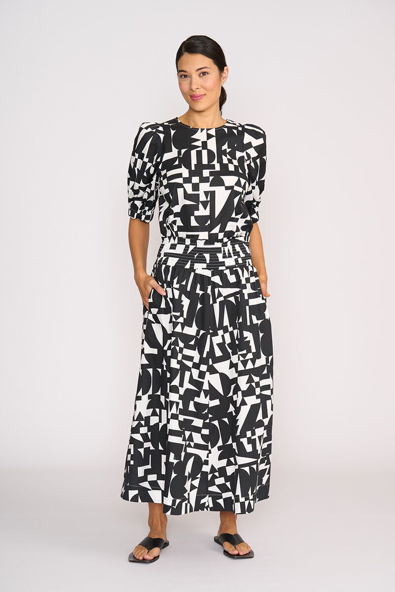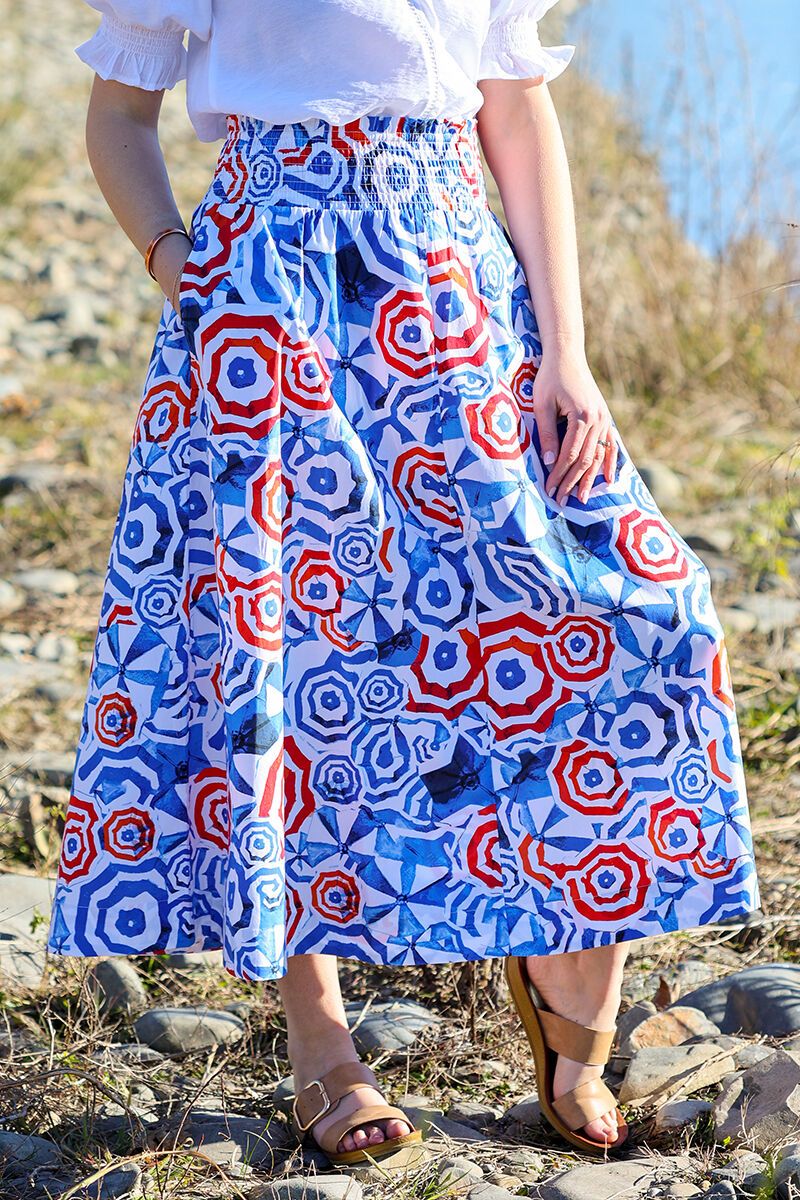 A summer standout, the Foil A-Line Shirred Waist Skirt is floaty, flattering, and full of personality. The wide shirred waistband adds comfort and shape, while bold prints make this one an easy statement piece—just add a white tee and go. Or if you are feeling bold, team it with the matching top!