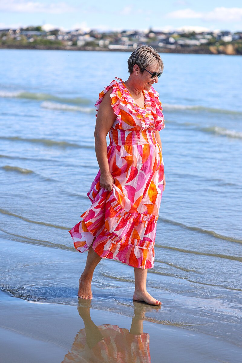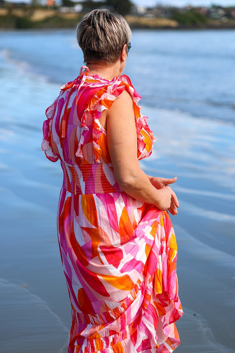 The Foil Best Odds Dress is made for sunny days and special moments. With its fun ruffled neckline and tiered hem, it brings instant joy to any occasion. Lightweight, easy to wear, and full of movement — it’s your go-to for summer events and long lunches alike.