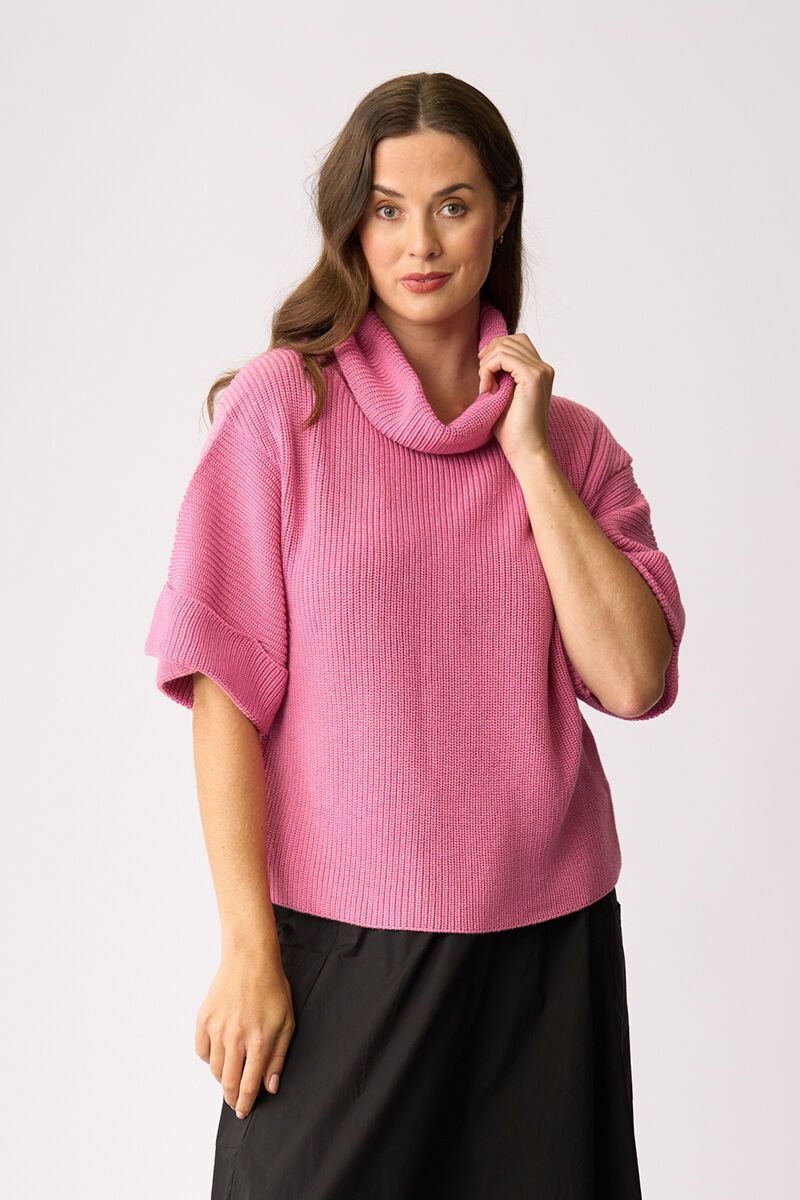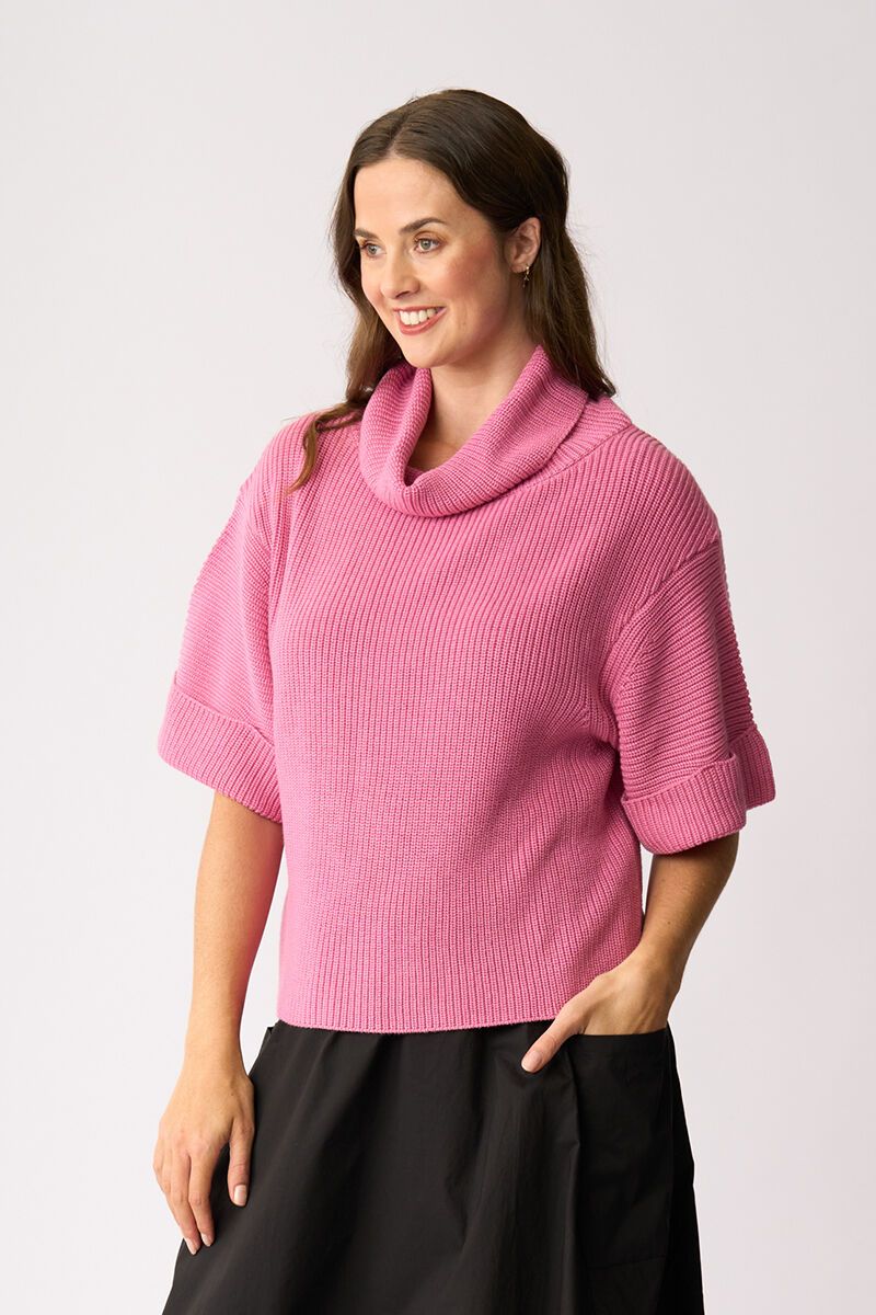 Foil Cowl Neck Rib Jumper