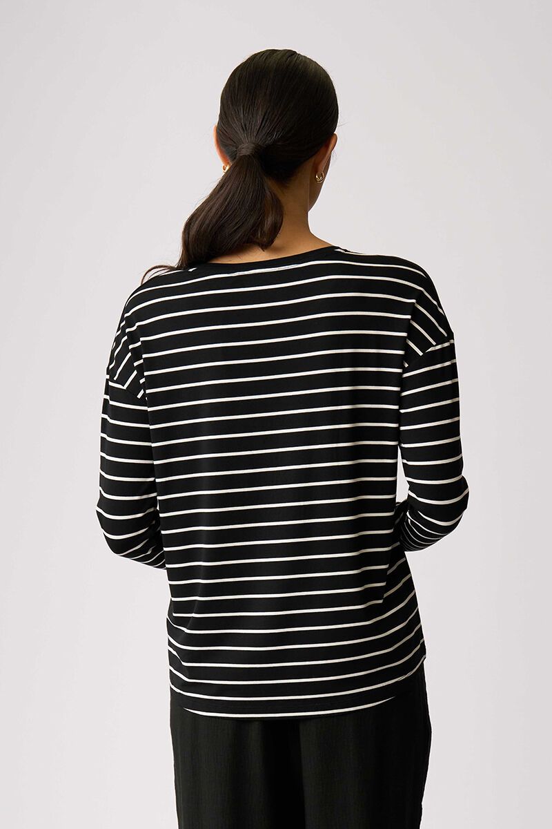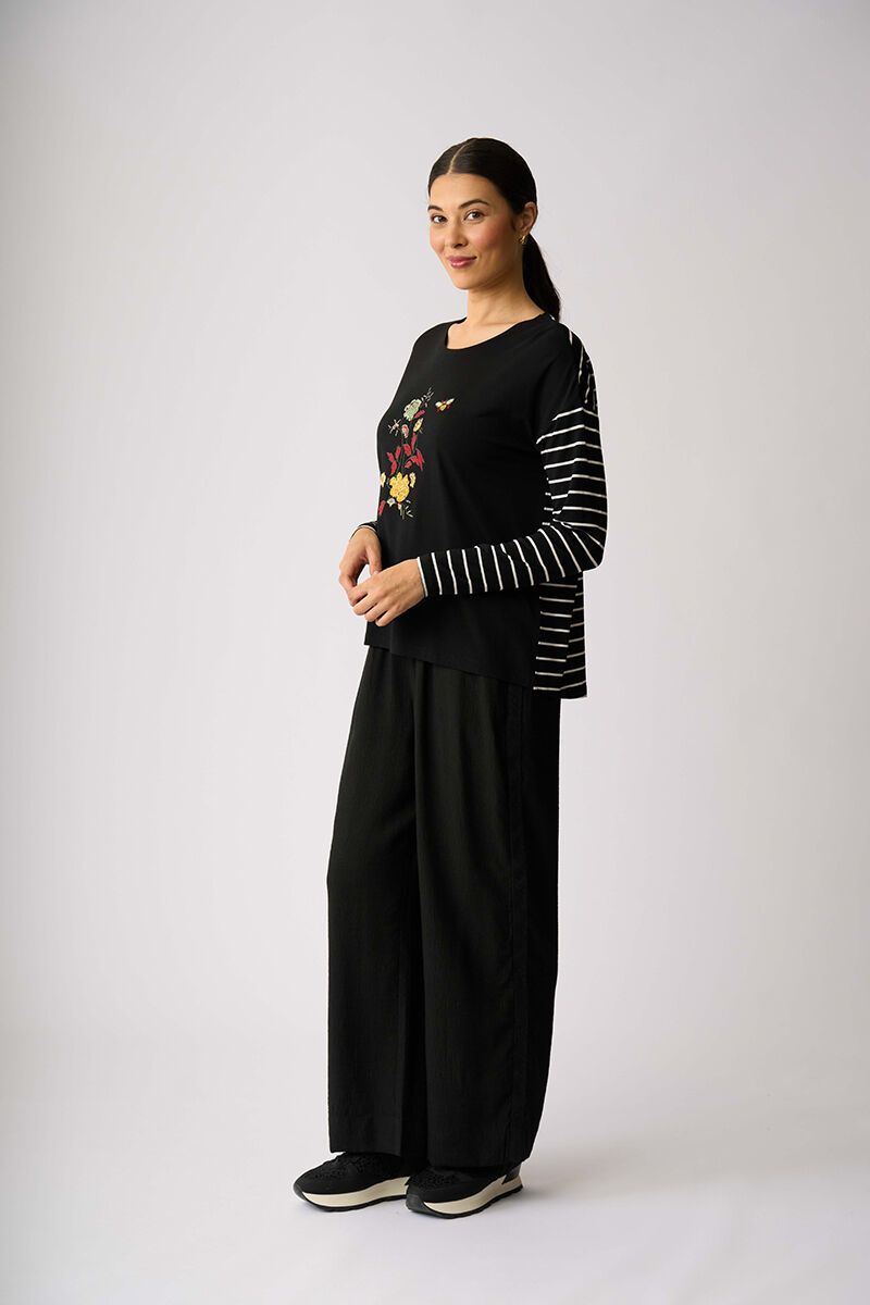 The Foil Floral Bee Drop Shoulder Top brings an easy statement to your everyday. Relaxed and soft, with floral detail and striped sleeves for that little extra.