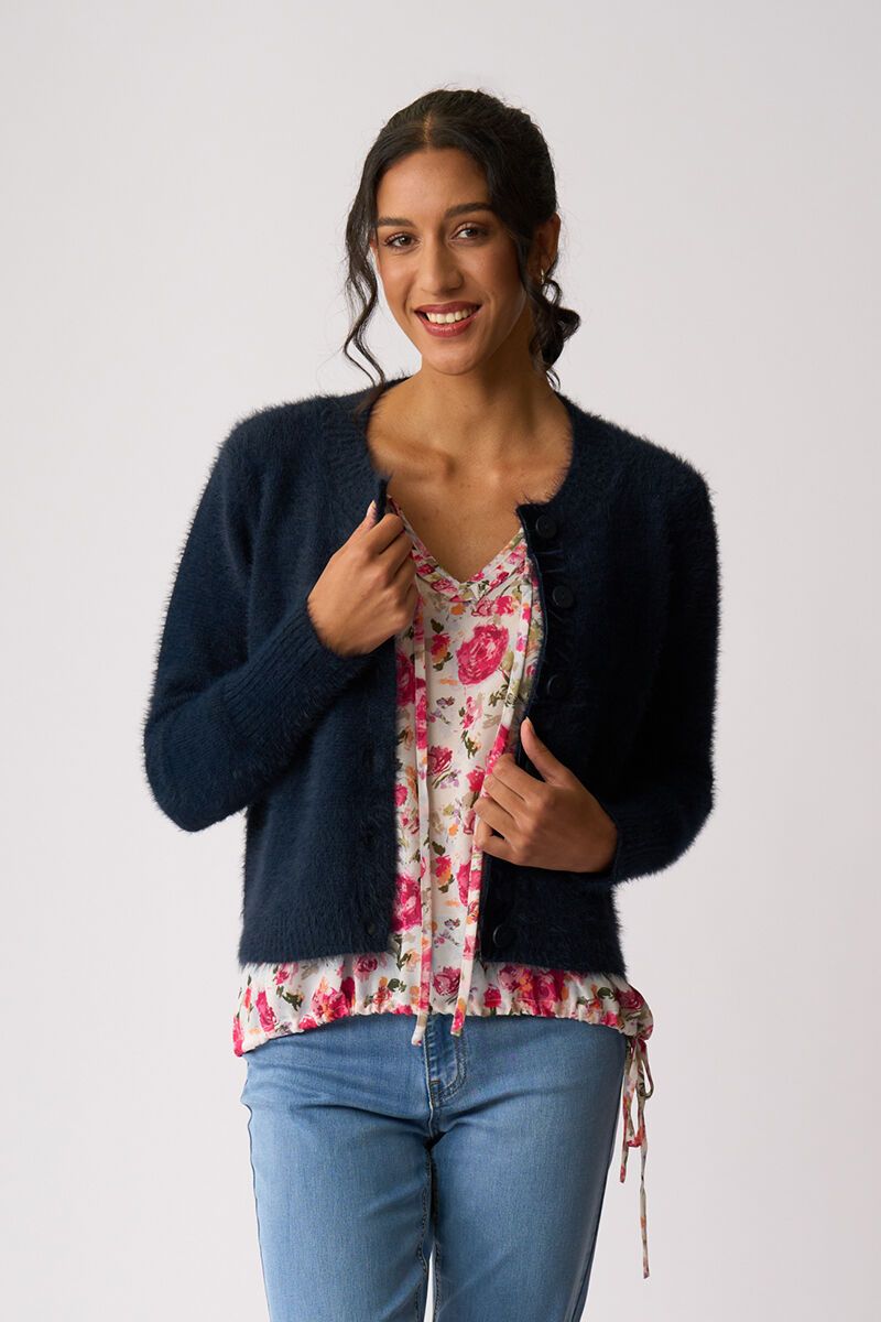 A cosy layer you’ll reach for again and again. The Foil Fluffy Scoop Cardigan features a soft, fluffy knit with a classic button front, making it perfect for layering over your favourite tops and dresses.
