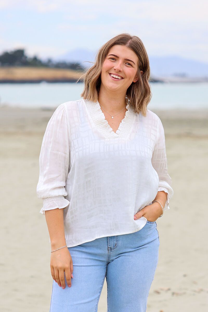 The Foil Frill It Up Top brings a little drama in the best way, with soft frills, a textured finish, and a flattering V-neck. Light, floaty, and perfect for dressy days or dinner plans—just add black pants and let the colour do the talking.