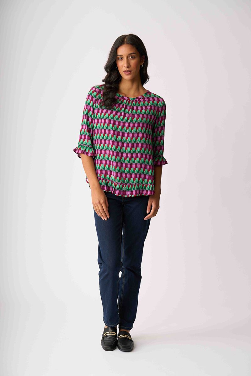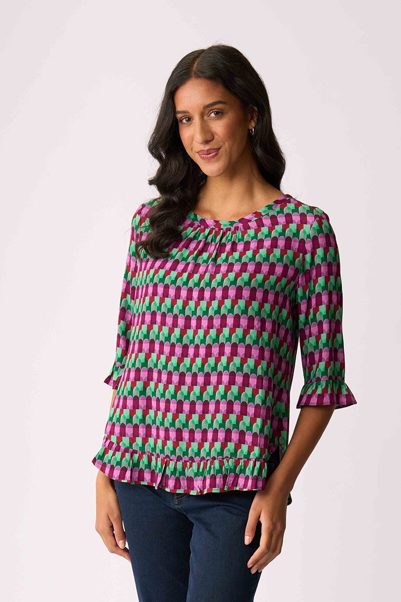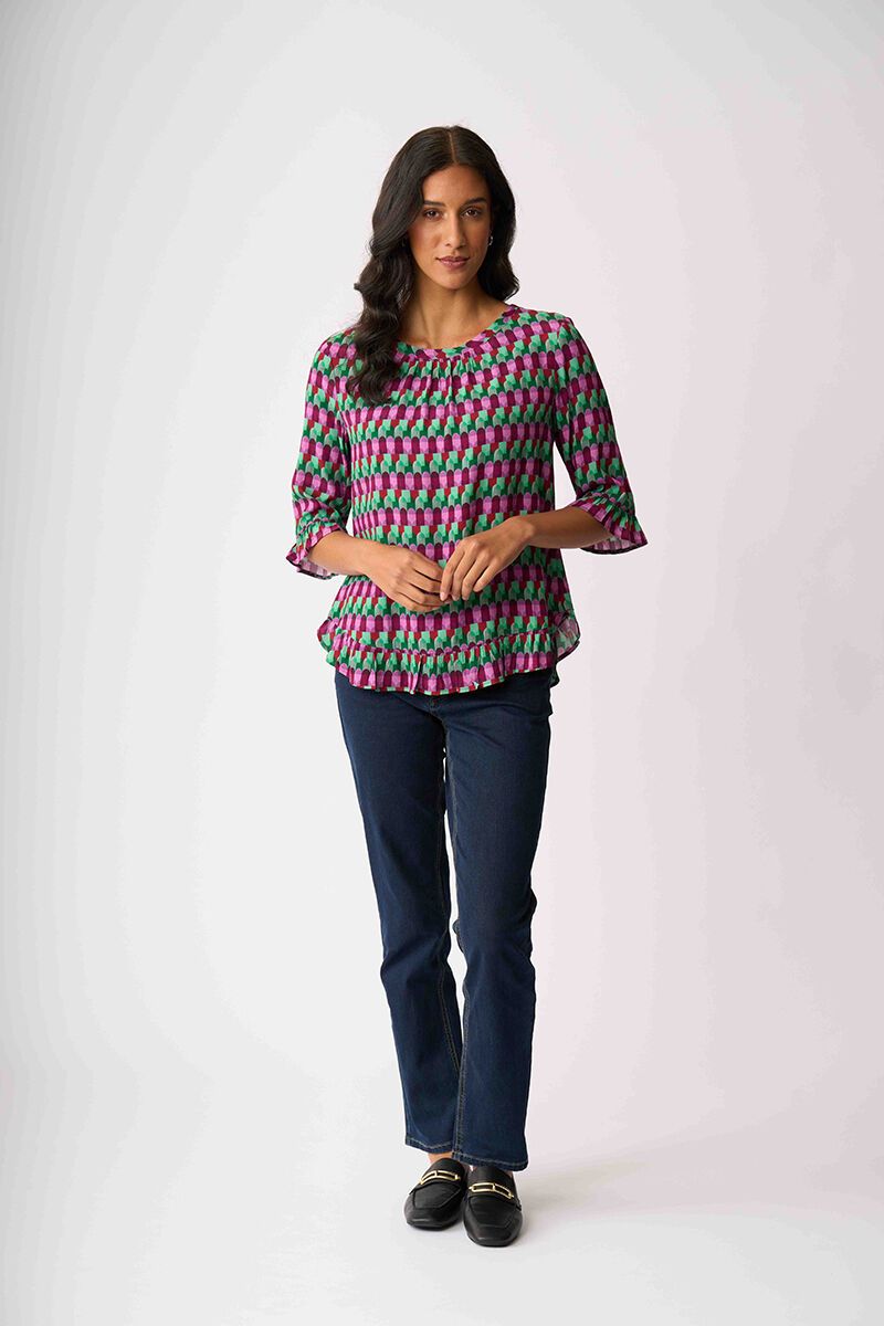The Foil Gathered Scoop Hem Top is light, floaty and full of personality. With soft gathering and a playful hem, it’s an easy statement piece for everyday styling.