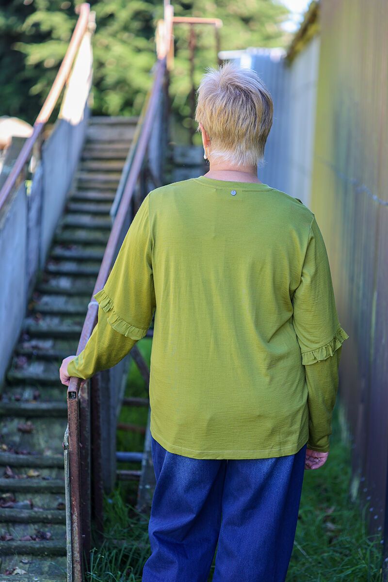 The Foil Merino Puff & Ruffle Sleeve Jumper adds a touch of flair to your day with playful ruffle details. Made from 100% merino, it's lightweight and perfect for layering or wearing on its own.