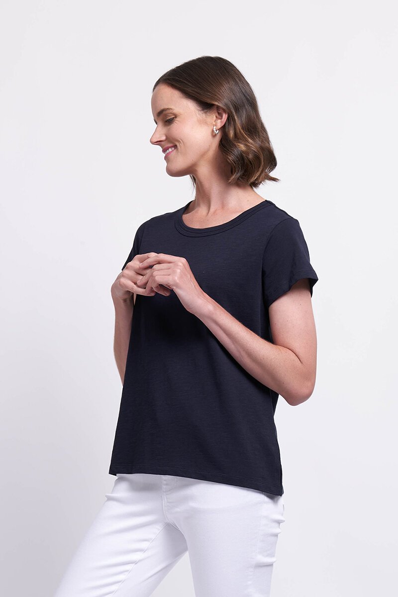 The Foil Double Up Tee brings effortless charm to your wardrobe with its clean lines and classic style. Crafted from lightweight cotton, this versatile tee features rolled sleeves and a flattering relaxed fit. Pair it with denim or linen for a breezy, go-anywhere look.