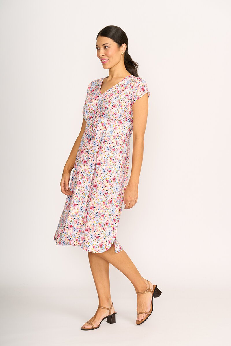 The Foil Print Button Front Drop Shoulder Dress is light, flattering, and full of feel-good energy. With soft shaping through the waist, a gentle bubble hem, and handy pockets, it’s an easy all-day option for warm weather days and summer outings.