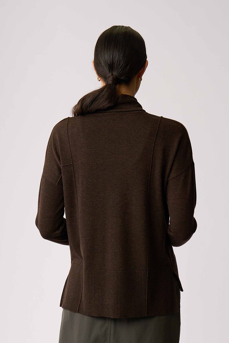 This easy knit is all about relaxed structure with a little edge. The reverse seam detailing adds interest without trying too hard, while the soft drape makes it perfect for everyday wear with pants or denim.