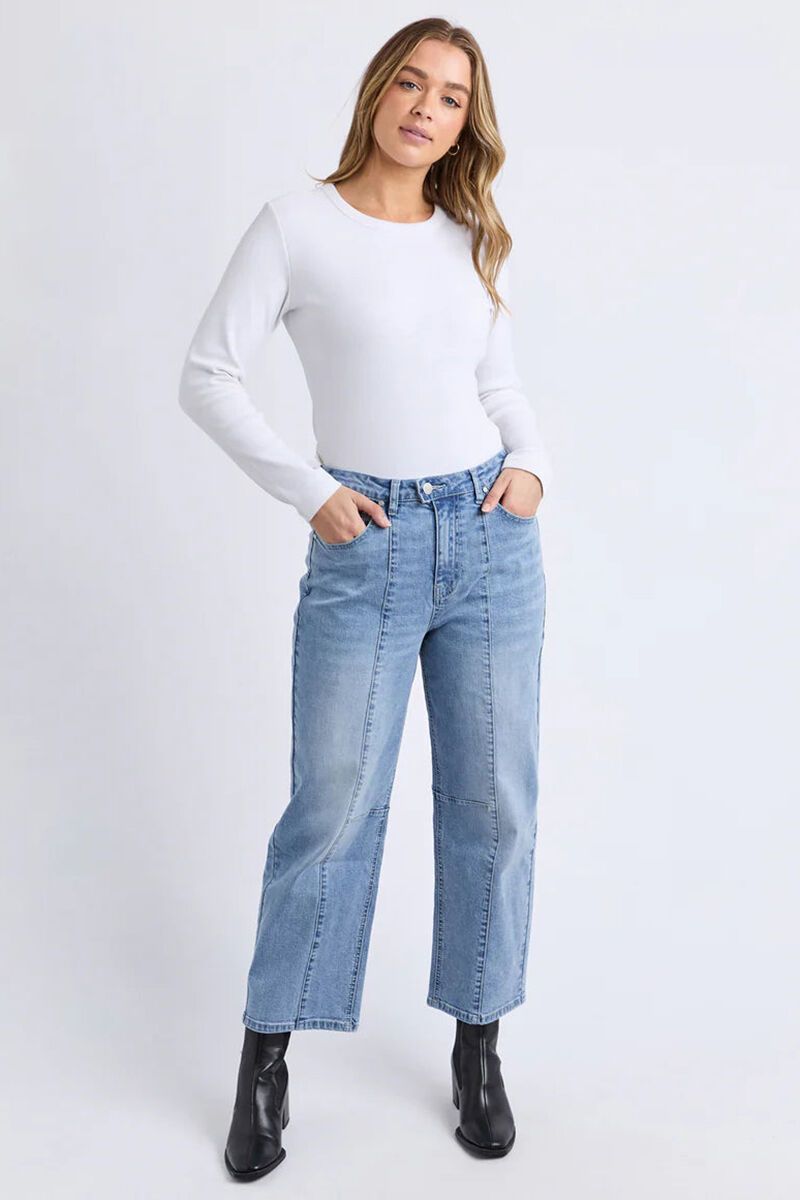 A modern denim shape you’ll reach for on repeat. The Ambrose Barrel Jean features a relaxed fit with subtle shaping through the leg for that cool, laid-back look. Easy to style with tees, knits or shirts.