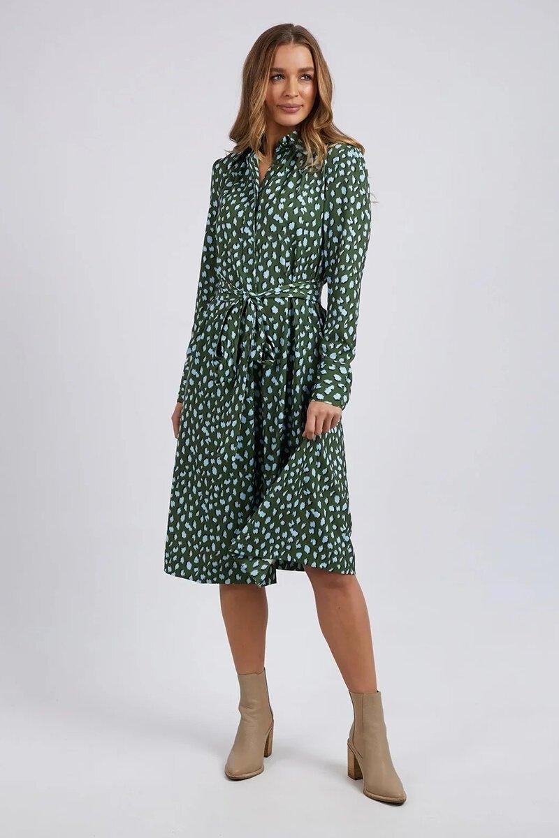 An easy Foxwood shirt dress with a flattering tie waist and soft drape. Effortless to dress up or down, perfect with boots, trainers, or sandals for everyday wear.