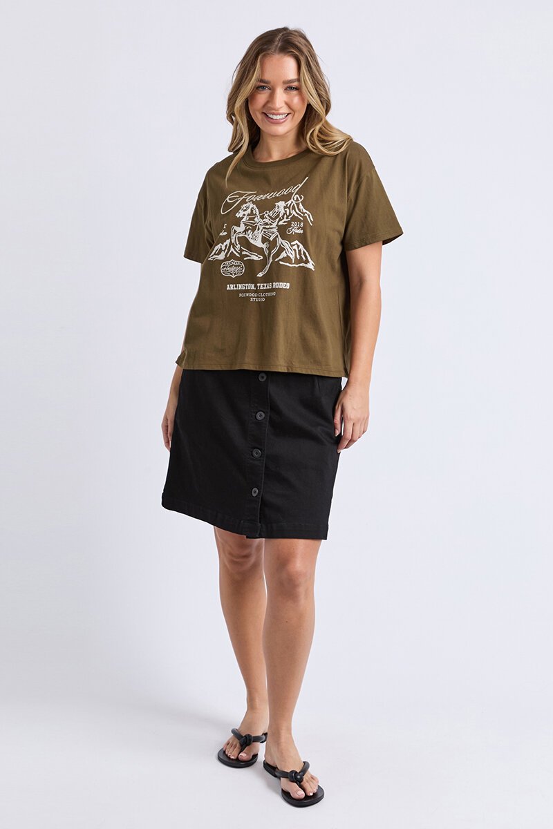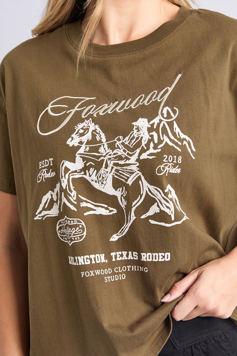 The Foxwood Arlington Tee is an easy graphic tee with a relaxed fit and soft feel. Perfect for everyday wear, styled with denim, skirts or layered under jackets.
