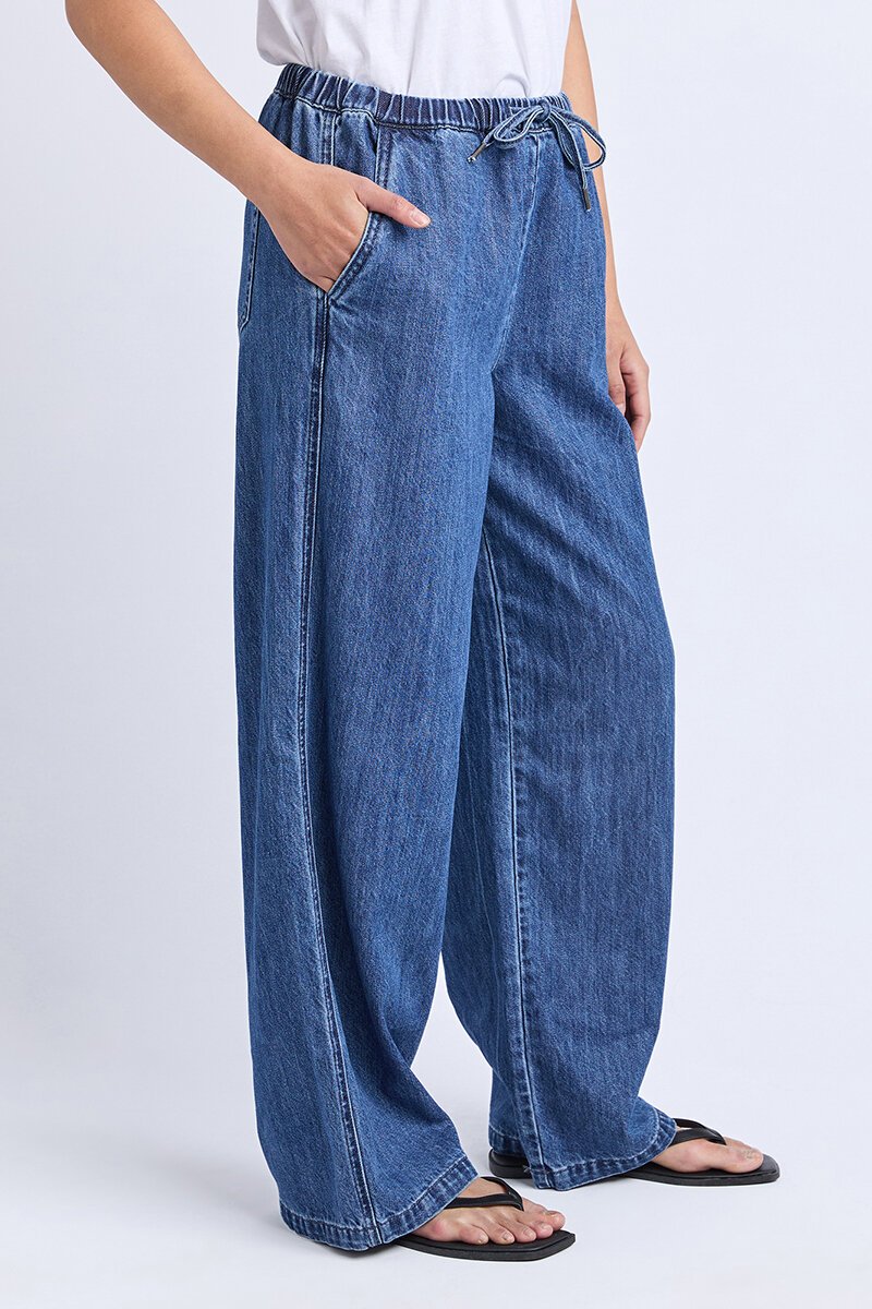 The Foxwood Delvine Jean is all about comfort—easy, relaxed, and perfect for warm days. With a soft drawstring waist and wide leg, they’re your throw-on-and-go denim for everyday summer outfits.