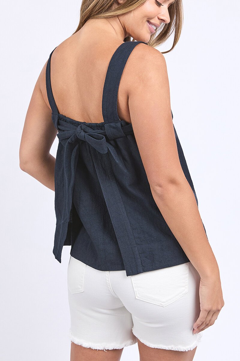 The Foxwood Lourdes Top brings the drama (in the best way). With its clean square neckline and that gorgeous bow-back detail, it’s equal parts sweet and statement. An easy summer piece that looks just as good with denim as it does dressed up.